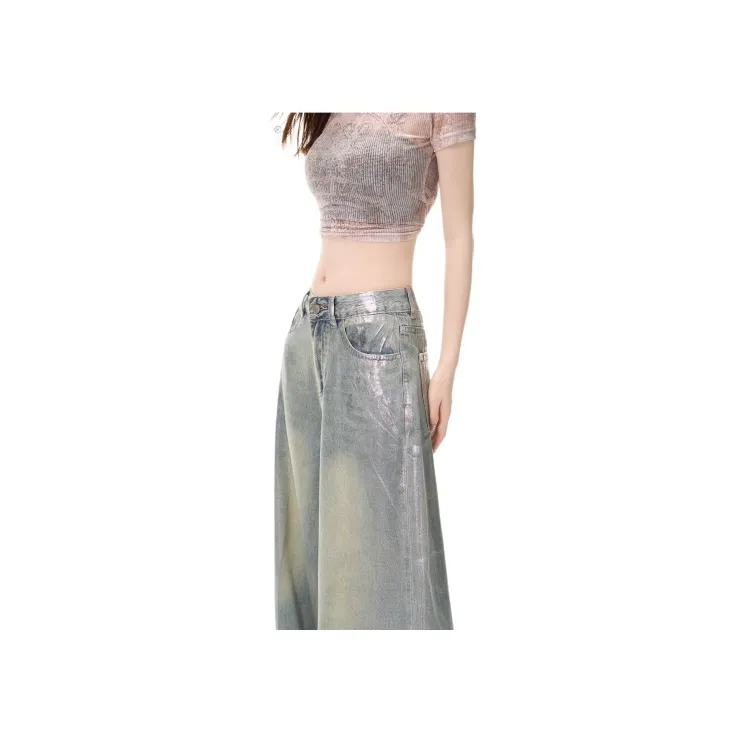 POWXV Серебряный Покрытый Световые Брюки Женские Джинсы