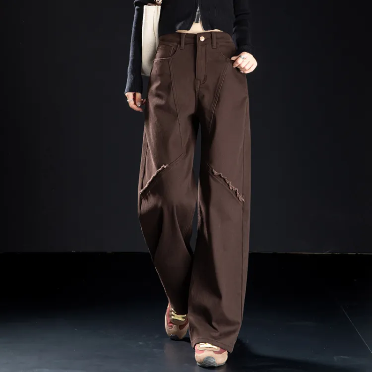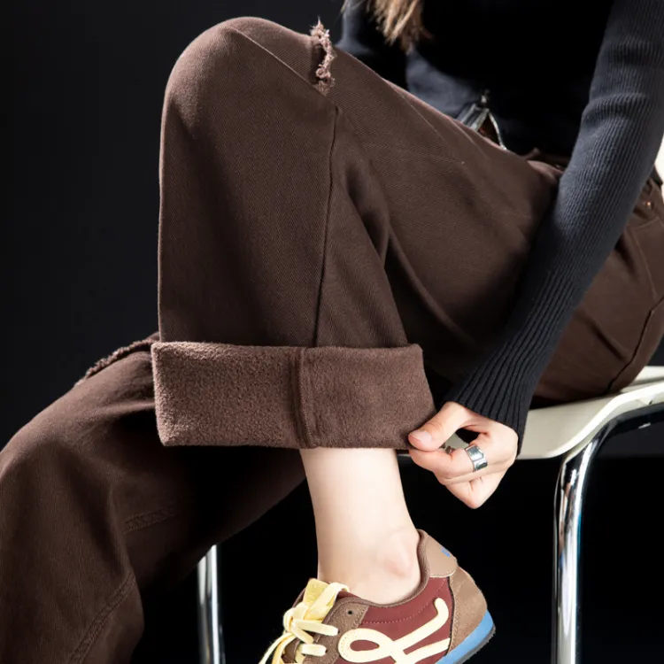 POWXV Кофе С флисовой подкладкой Женские Джинсы
