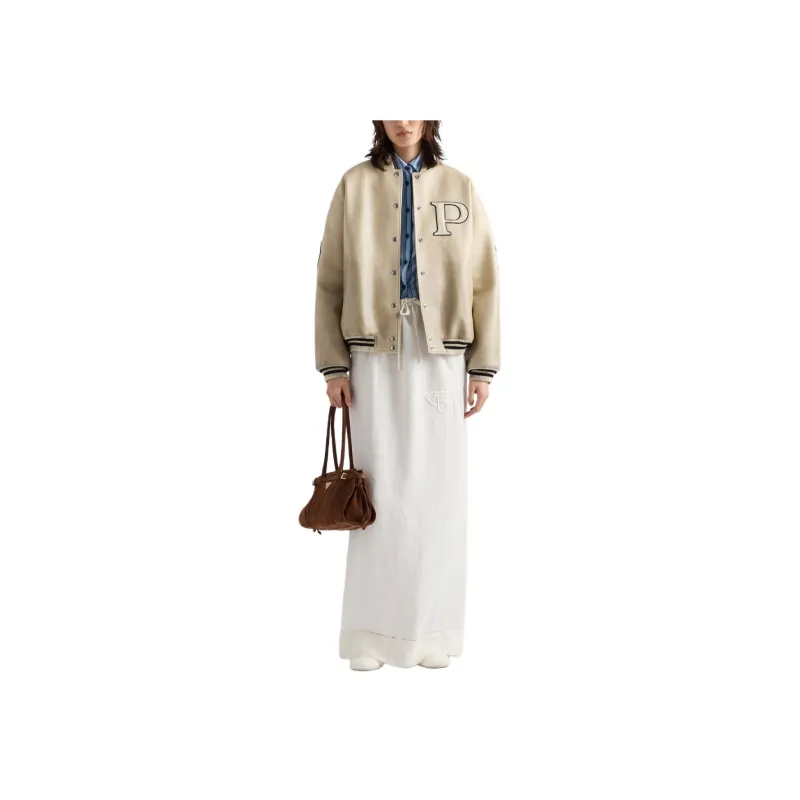 PRADA SS24 Повседневная длинная юбка женская сливочного цвета
