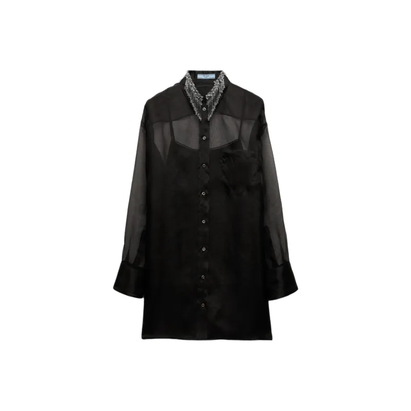 PRADA FW24 Длинное платье с длинными рукавами женское черное
