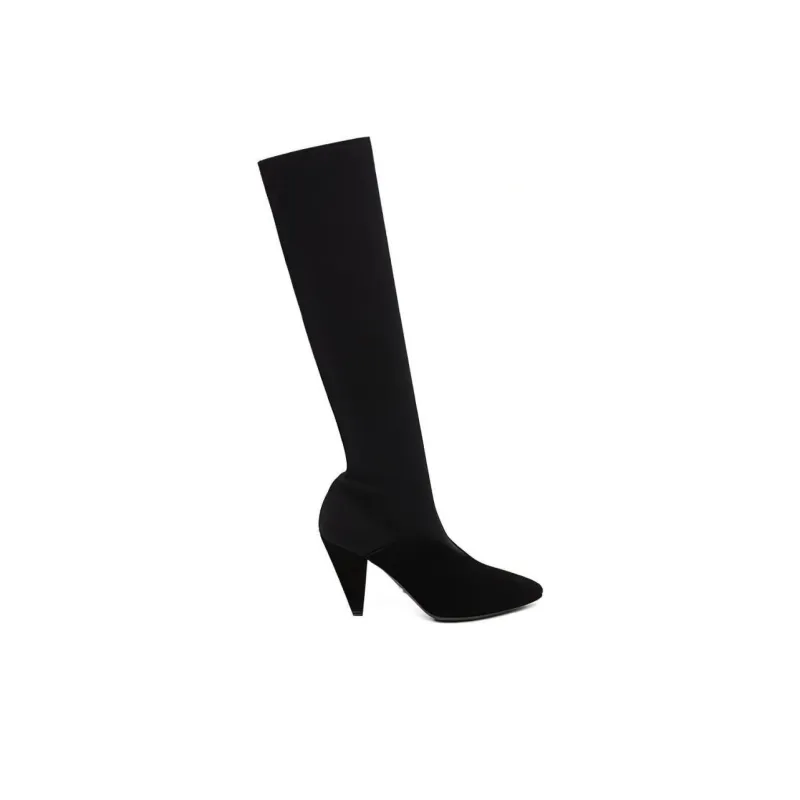 PRADA Женские высокие сапоги до колена черные