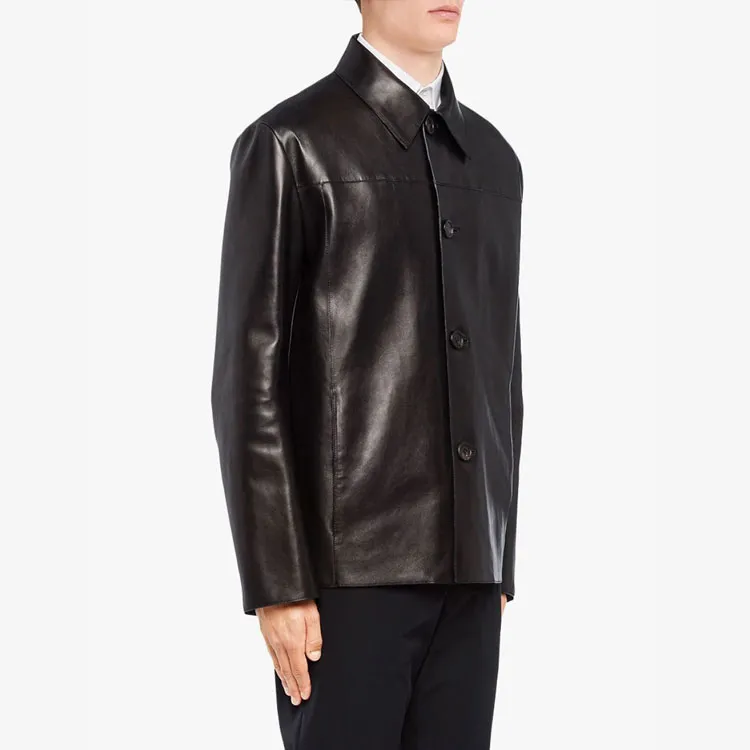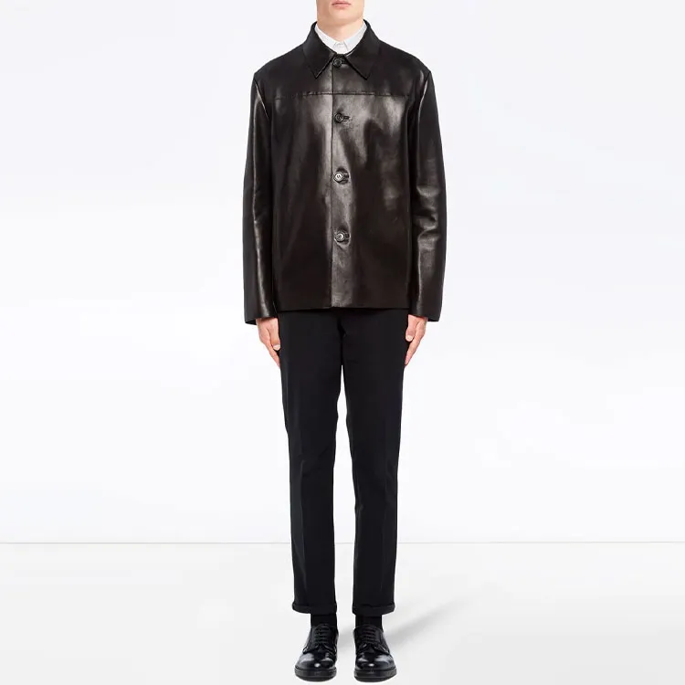 PRADA Кожа Куртка Мужская Черная
