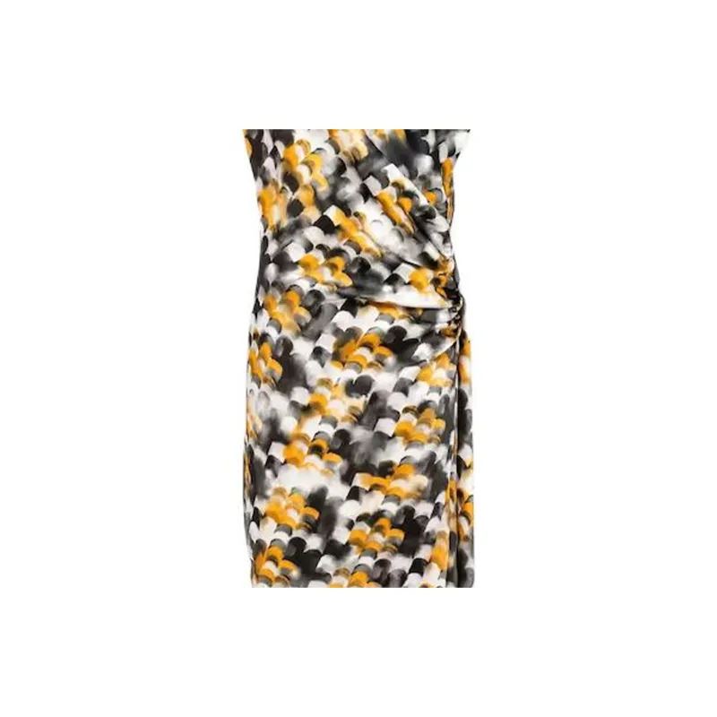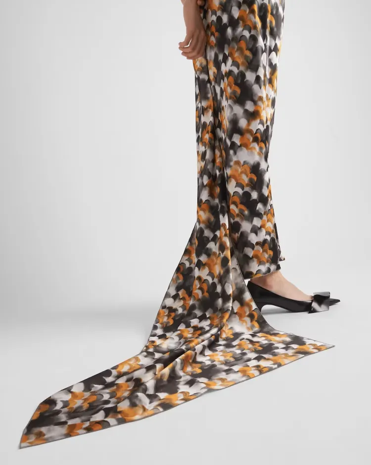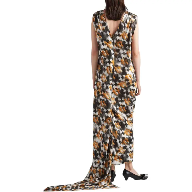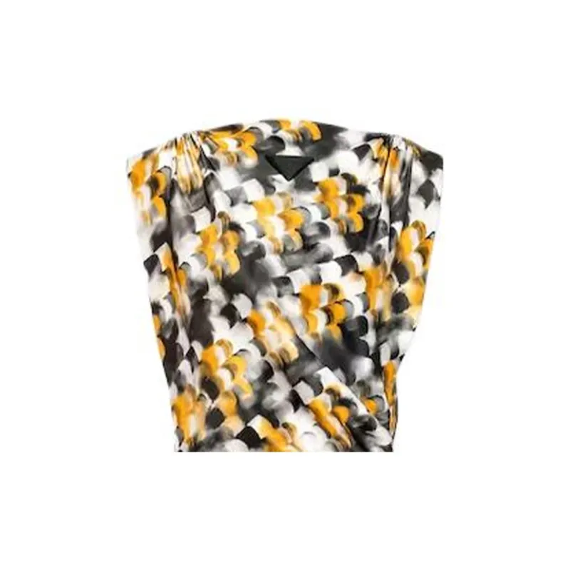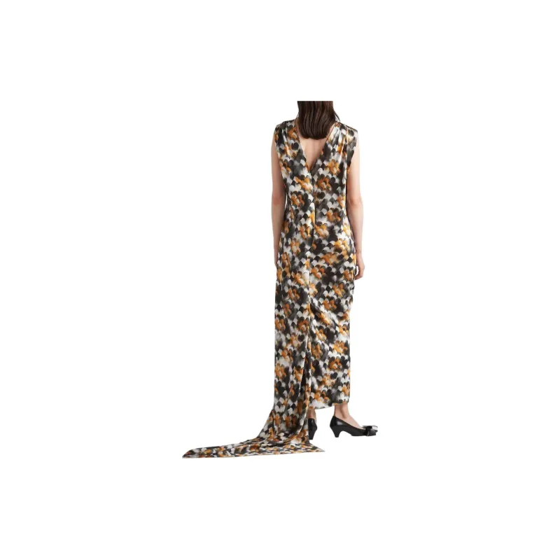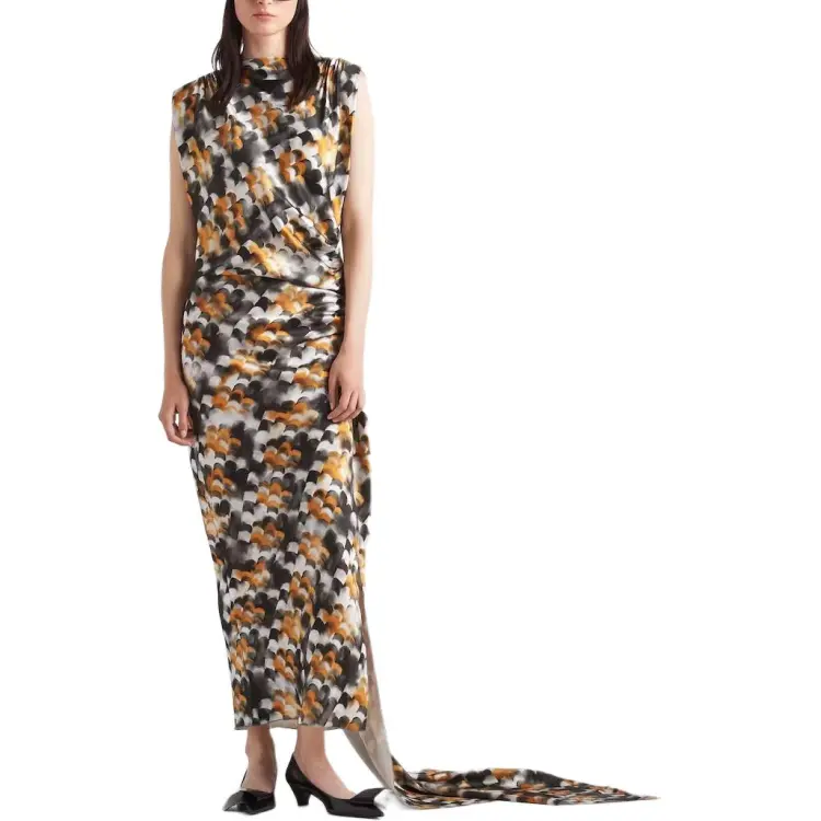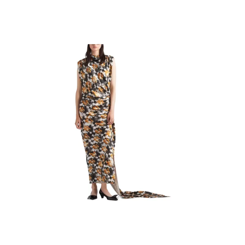 PRADA Длинное Печатное Сатиновое Платье Без Рукавов Женское Желтое
