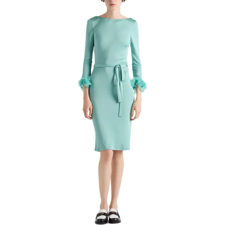 PRADA Длинное платье с длинными рукавами женское жадеит зеленый