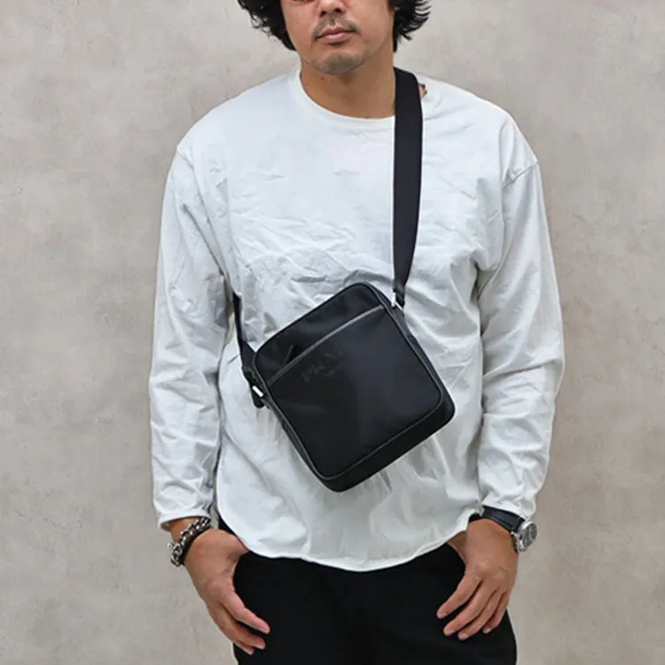 PRADA Нейлоновая сумка через плечо с вставками из кожи унисекс черная