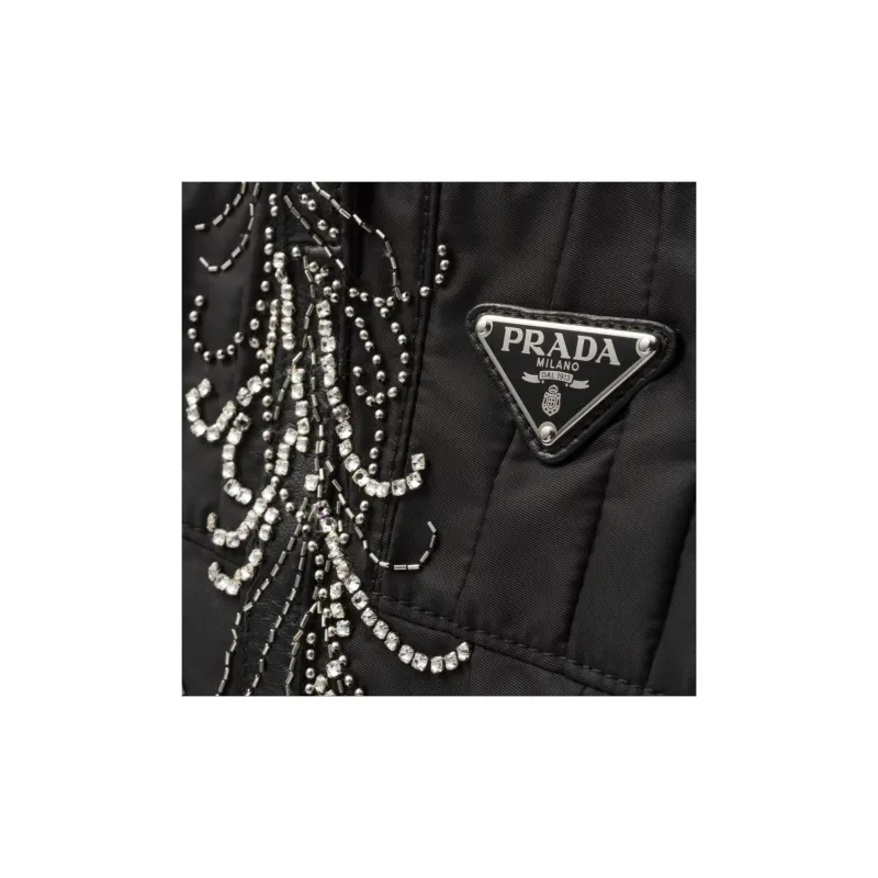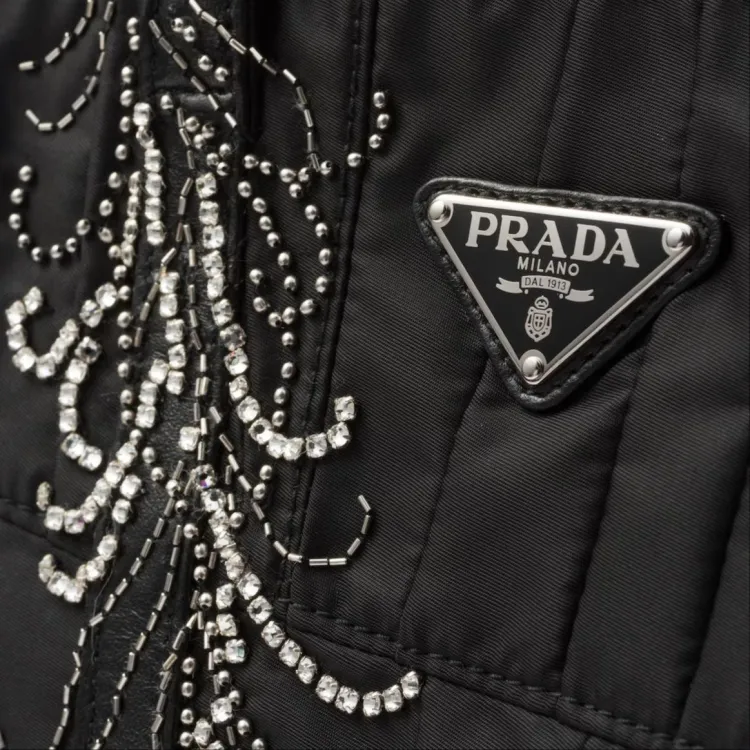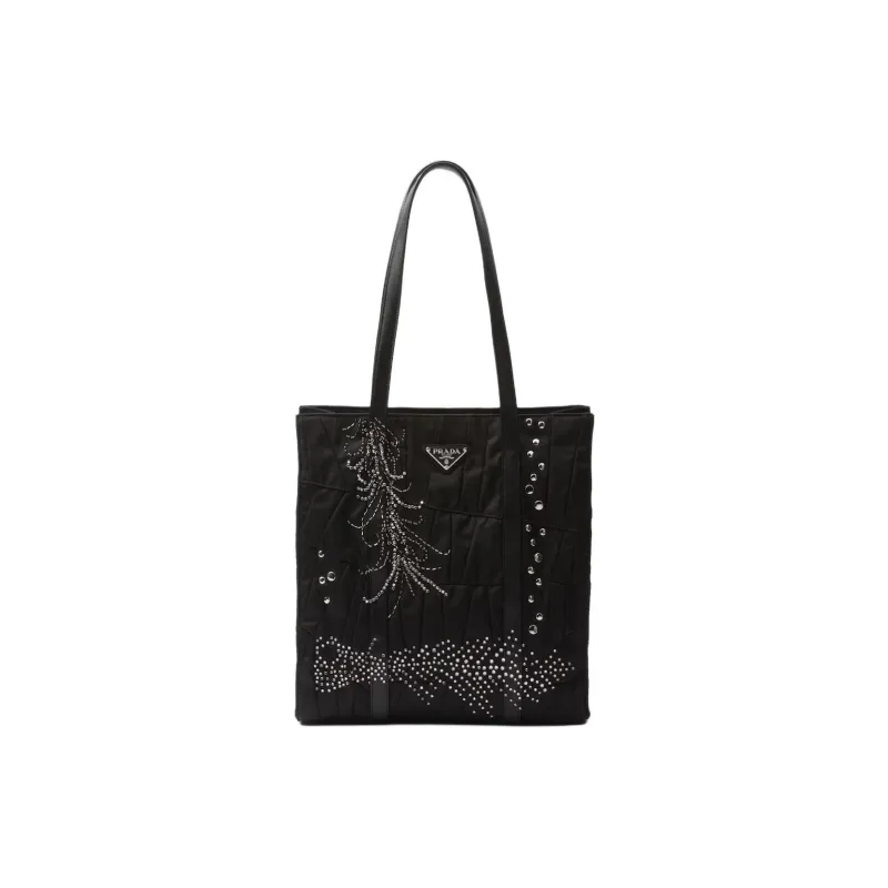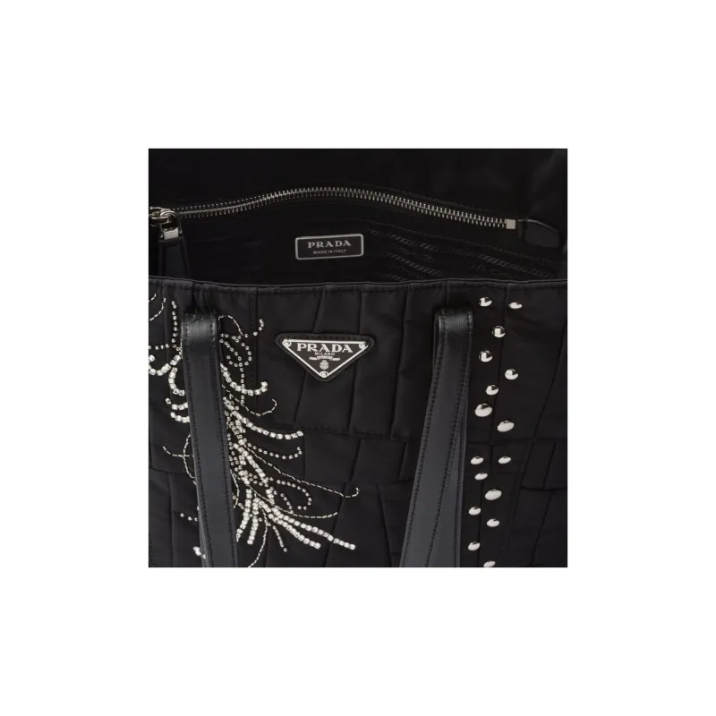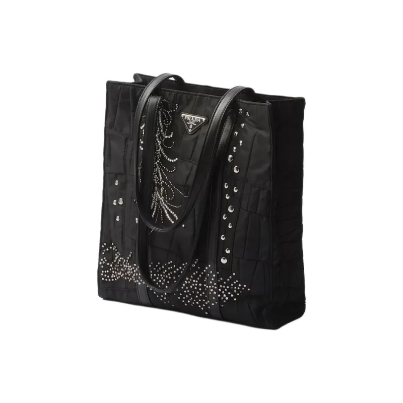 PRADA Нейлон Пэчворк Вышивка Сумка-тоут Сумка для покупок Сумка через плечо Сумка среднего размера Женская Черная