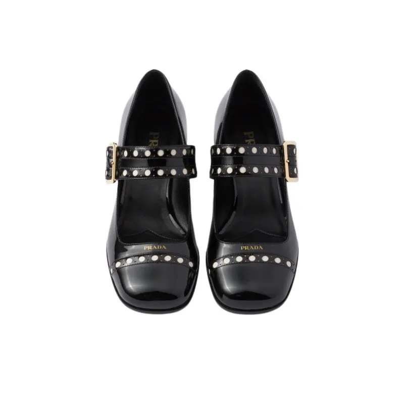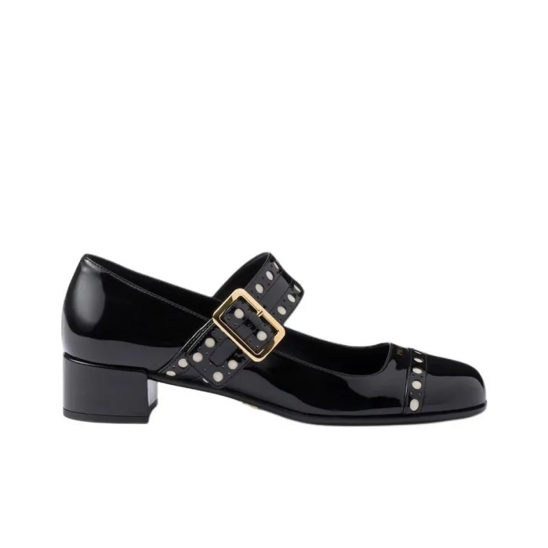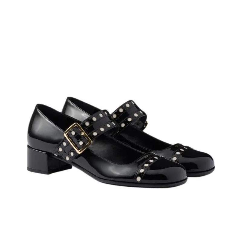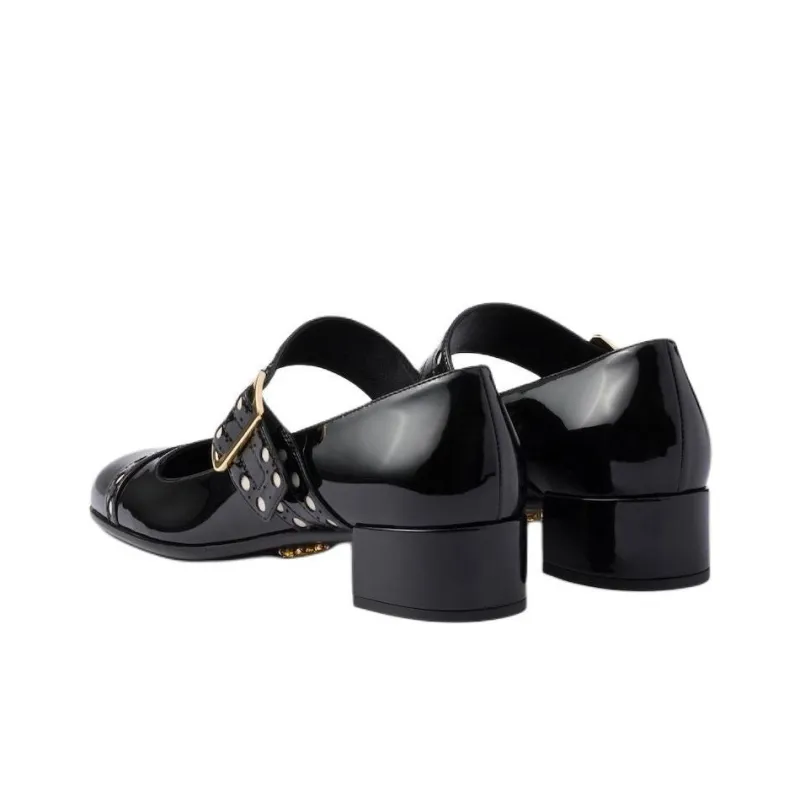 PRADA Патент Квадратный Каблук Mary Jane 3,5 см Женские Черные