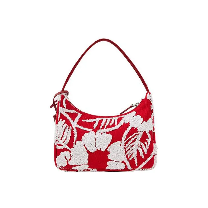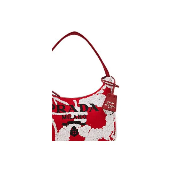 PRADA RE Edition Ткань Вышивка Детали Сумка-хобо Сумка на плечо Сумка Обычный Женские Красный