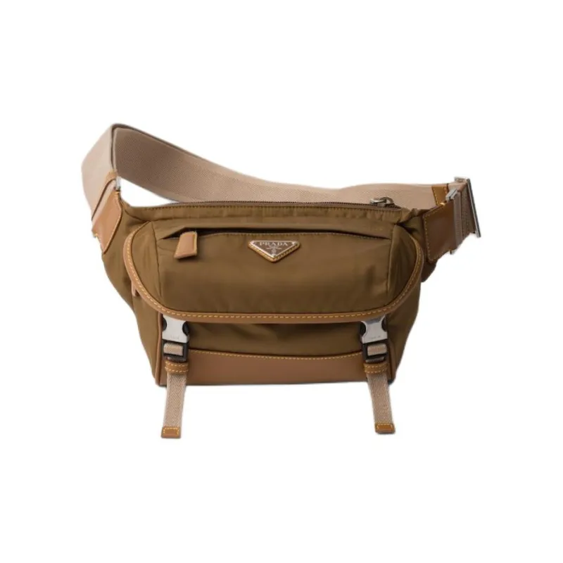 PRADA Переработанный нейлон с кожаными вставками сумка через плечо мужская сумка бежевый цвет