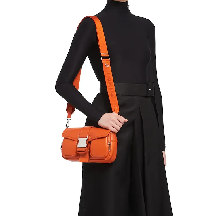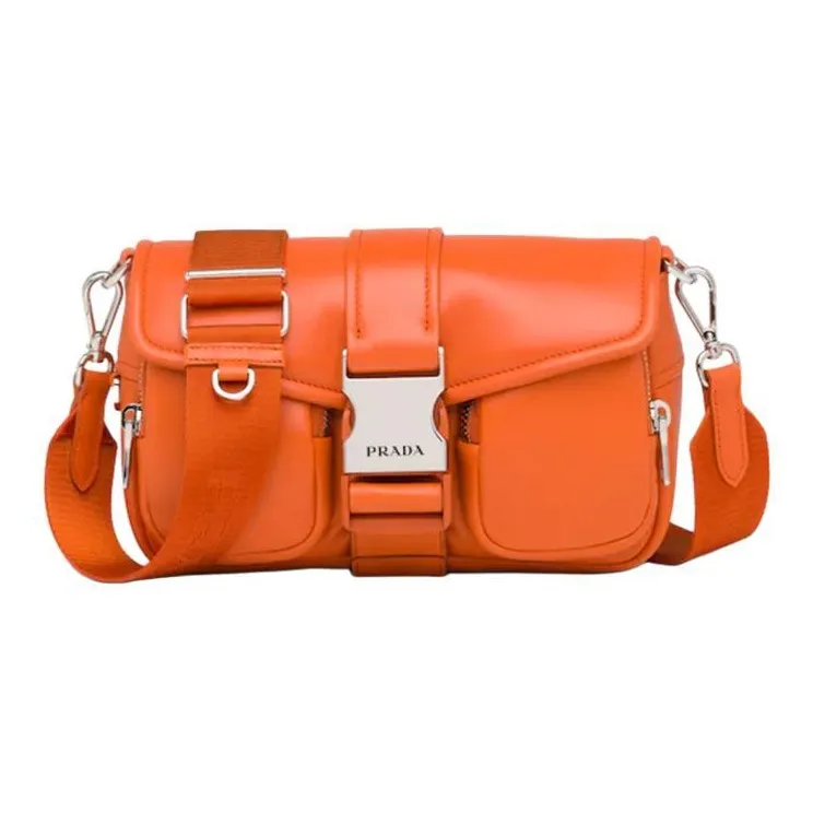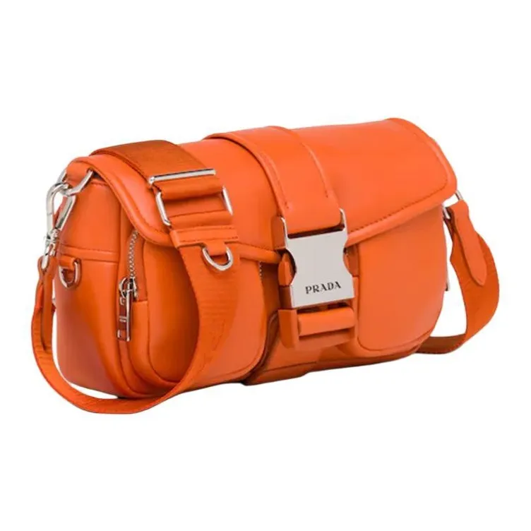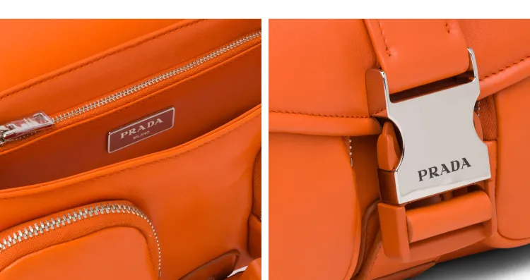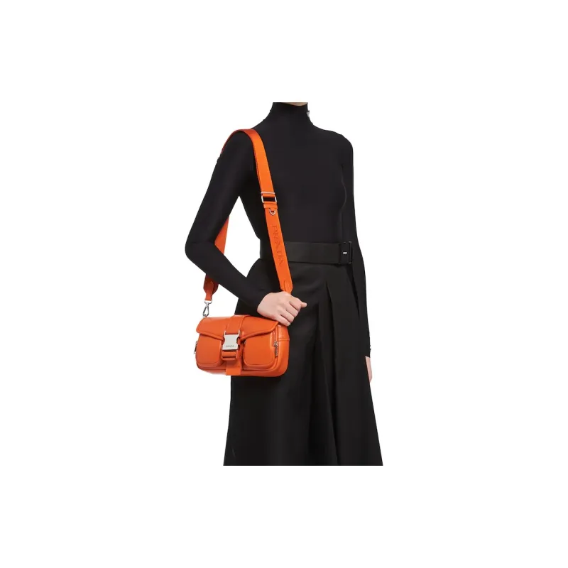 PRADA Переработанный нейлон с овчиной Сумка через плечо Сумка на плечо Женская Папайя Оранжевый