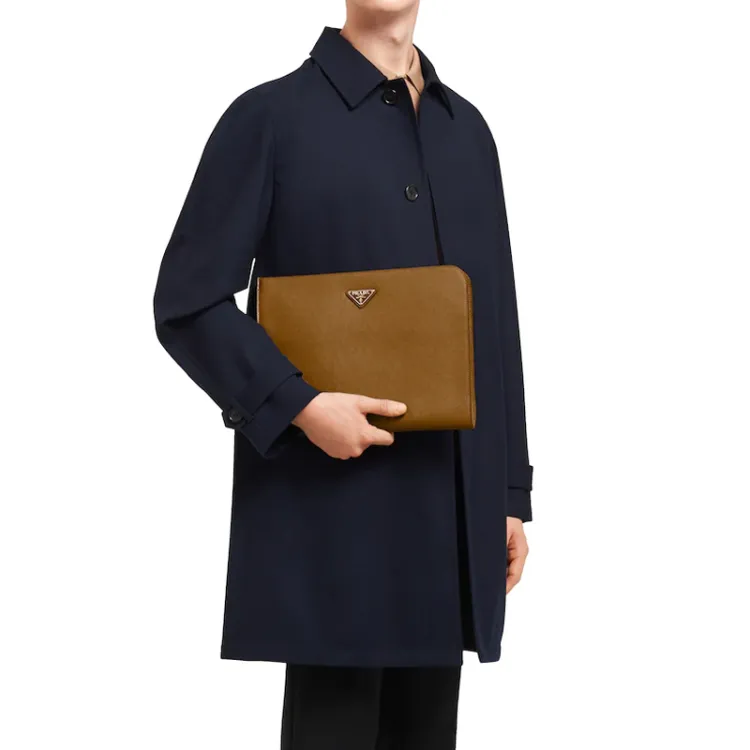 PRADA Saffiano кожа клатч мужской корица