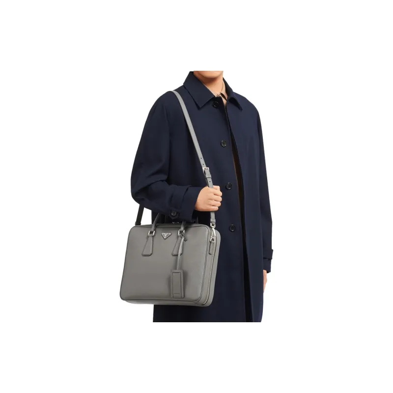 PRADA Saffiano Кожа Сумка Мужская Серого цвета