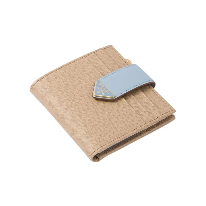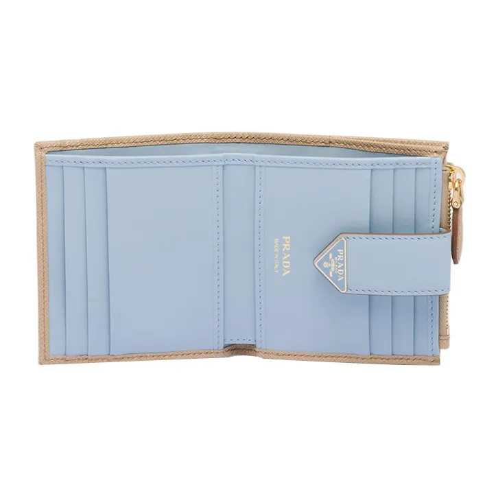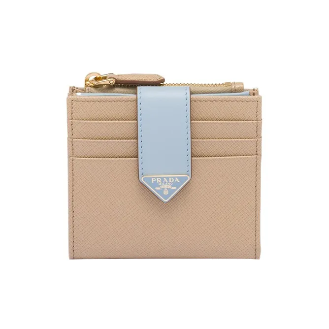PRADA Saffiano Кожа Кошелек Маленький Женский Песочный Светло-Синий