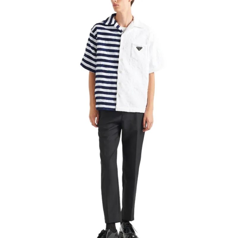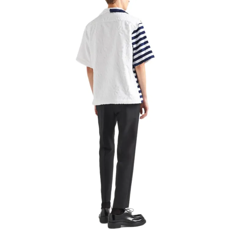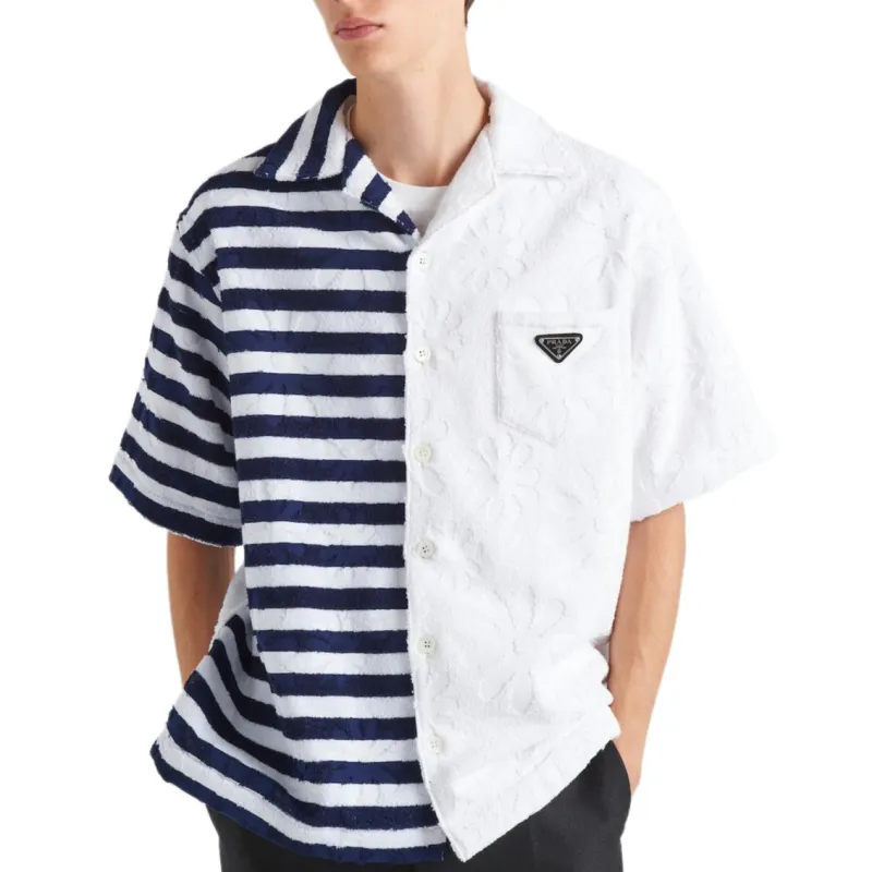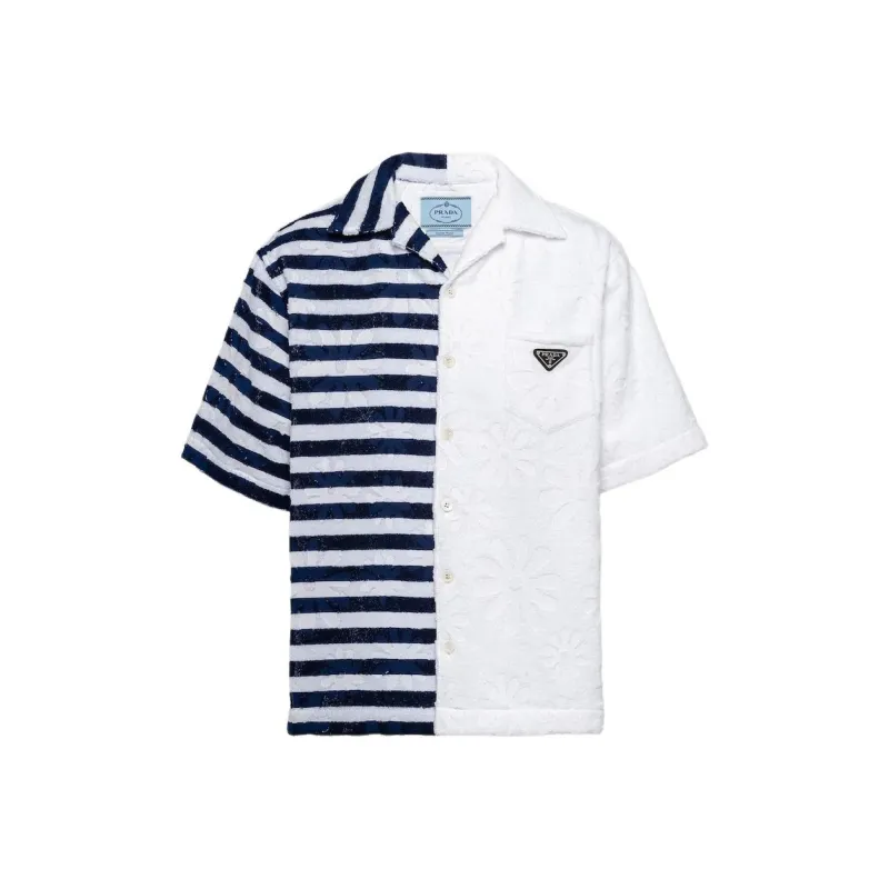 PRADA Синий с Белым Lettering Мужские Рубашки