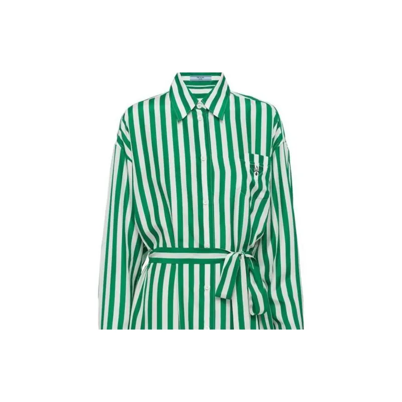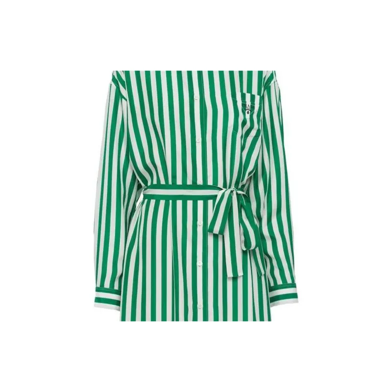 PRADA SS22 Длинное платье с длинным рукавом женское зеленое
