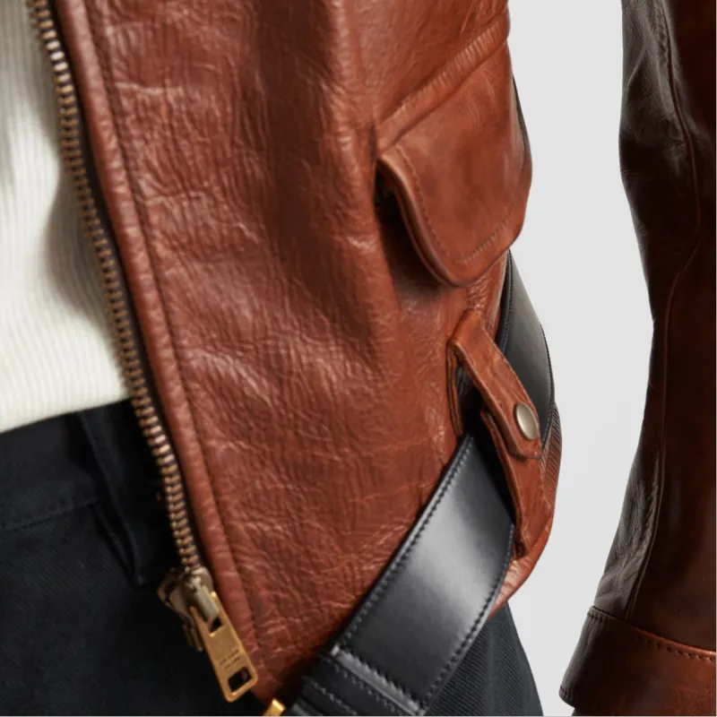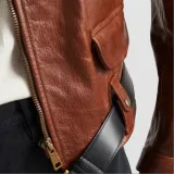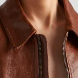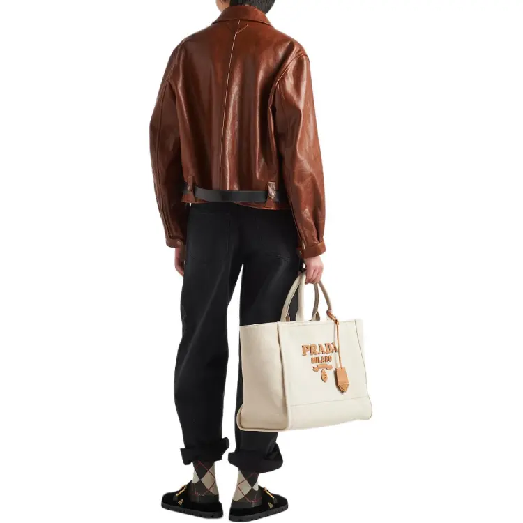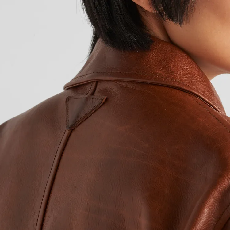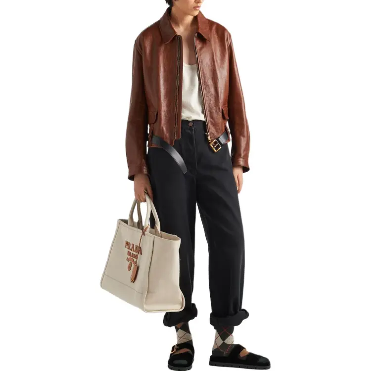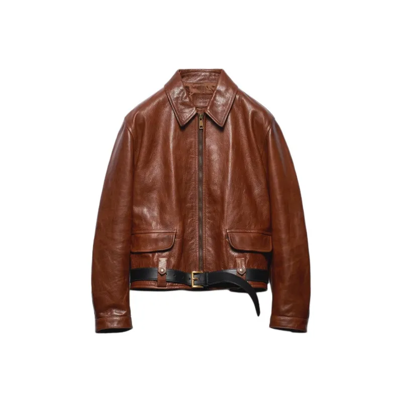 PRADA SS24 Кожа Куртка Женская Красная Сандаловое дерево Древесный цвет
