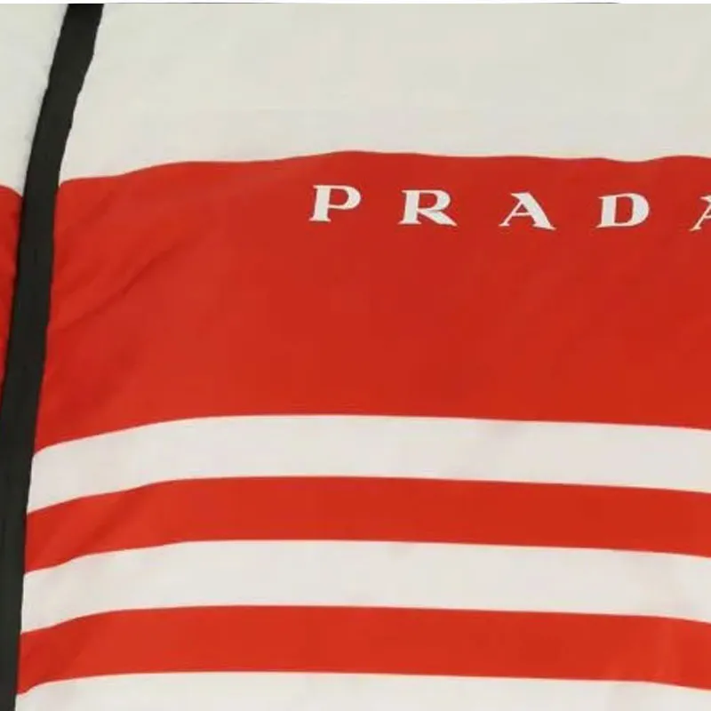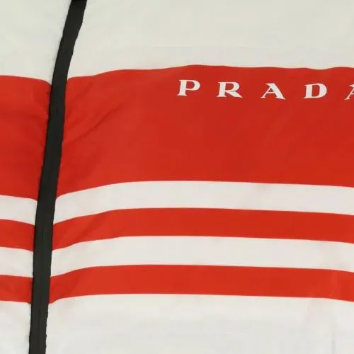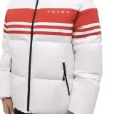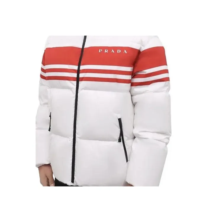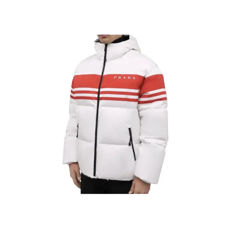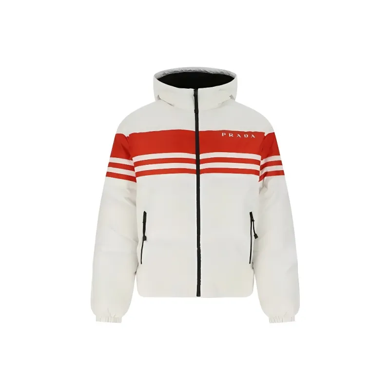 PRADA Полосатый С капюшоном Утолщенный Пуховик Мужской Белый
