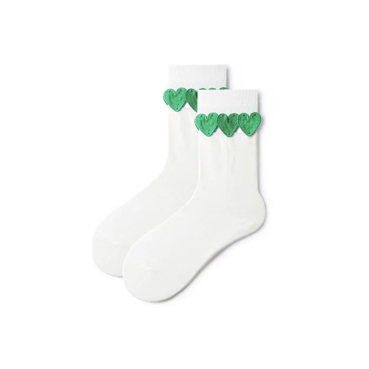 Primeet 1 шт Белое основание Зеленое сердце Женские носки MID до икры