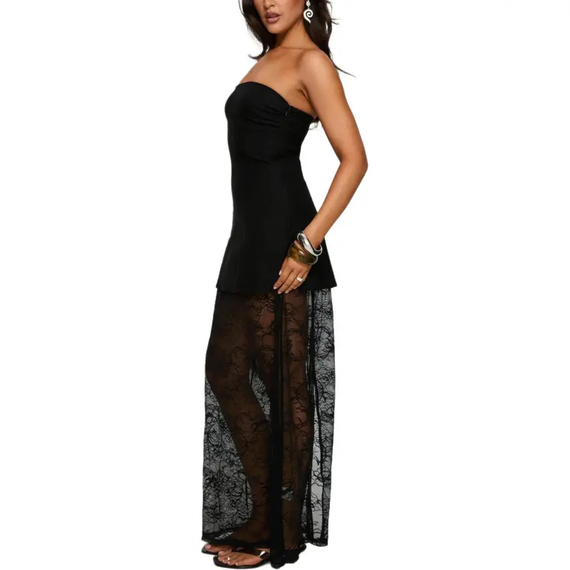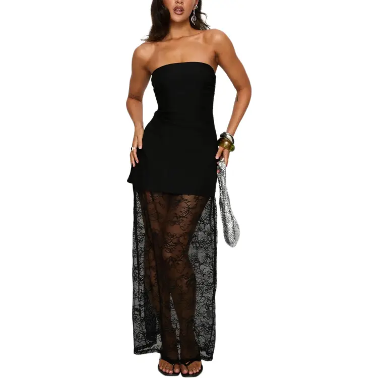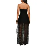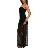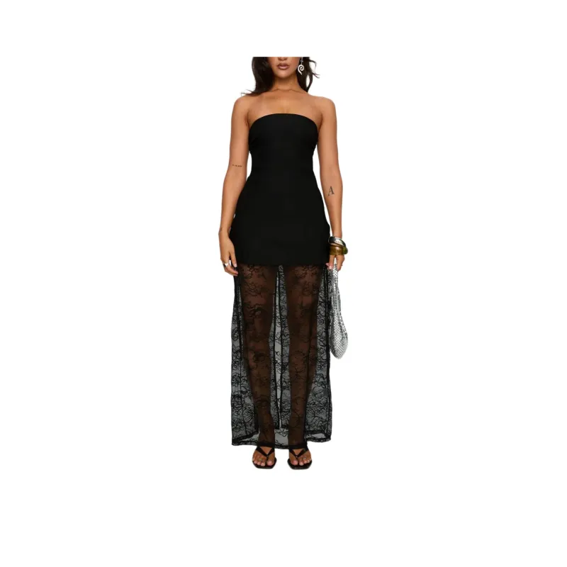 PRINCESS POLLY Aleda Прозрачный Кружево Детали Без бретелей Макси Платье Без рукавов Женское