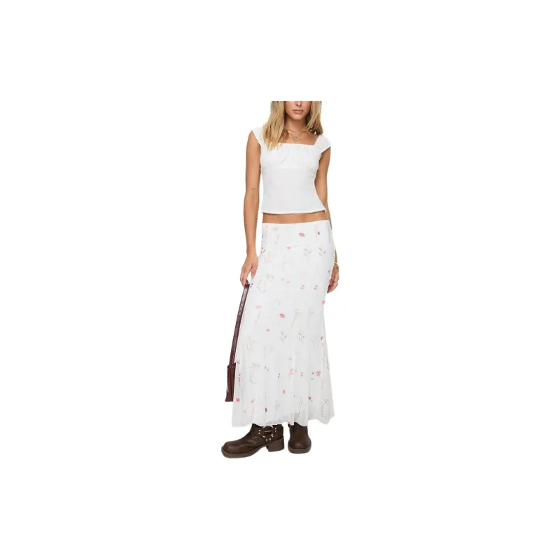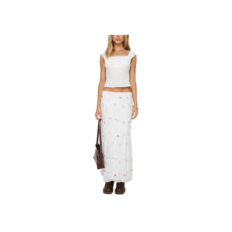 PRINCESS POLLY BREEZEWOOD Maxi Юбка Повседневная Длинная Юбка Женская Белая Белый