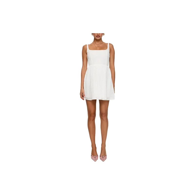 PRINCESS POLLY Кармел Вышитое Мини Платье Slip Платье Женское Белое Белый