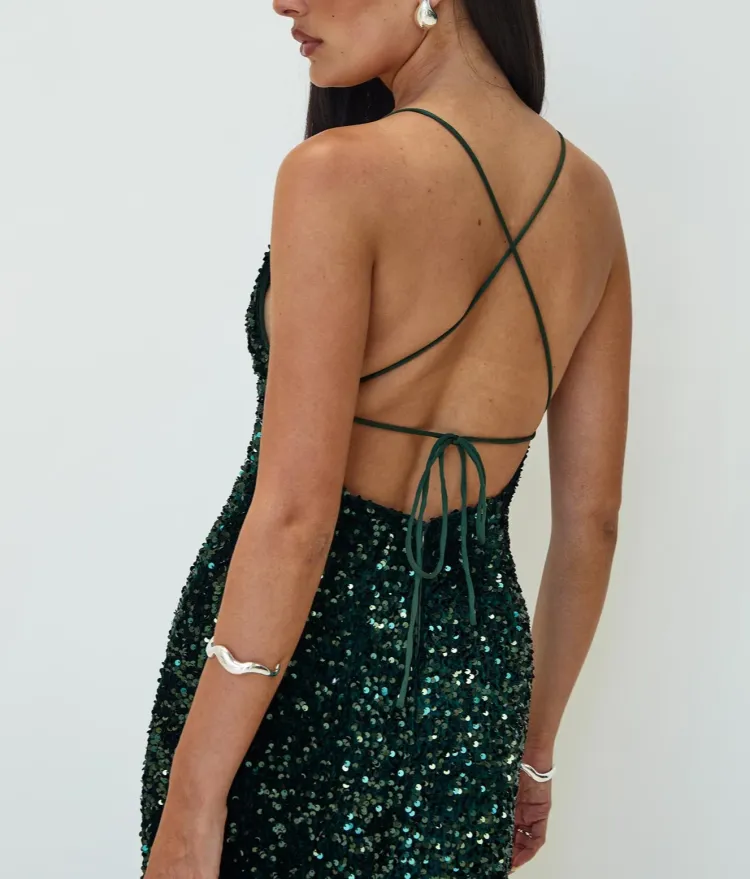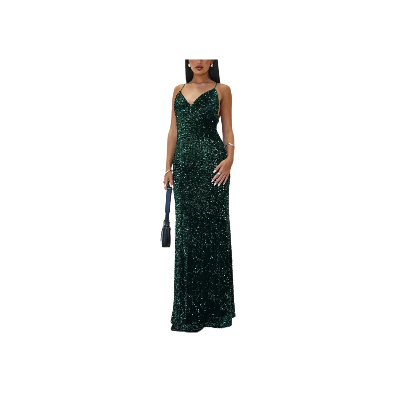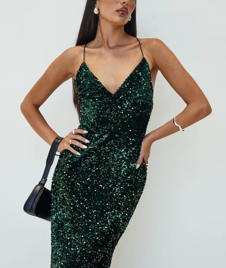 PRINCESS POLLY CHARLETTE Sparkle Макси Платье Темный Slip Платье Женское Зеленый Зеленый