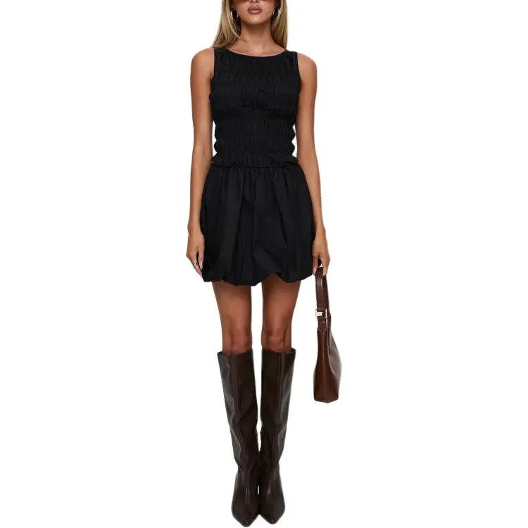 PRINCESS POLLY DEMURE Shirred BUBBLE Подол MINI Платье Без рукавов Платье Женское Черный Черный