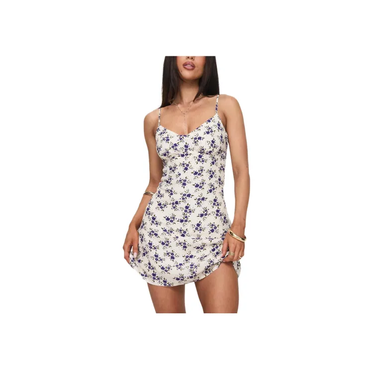 PRINCESS POLLY JAYE Мини Платье Slip Платье Женское Белое с Синим Цветком Принт