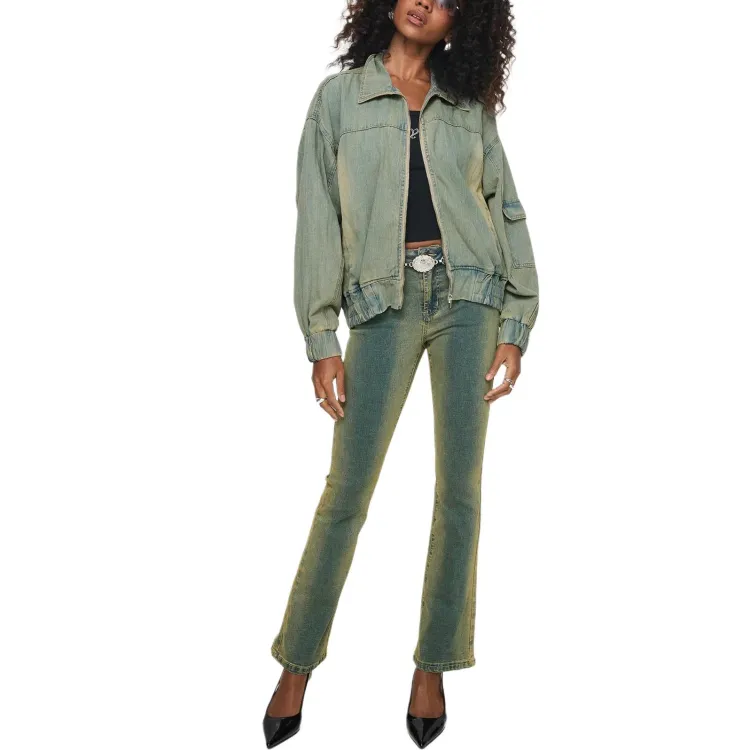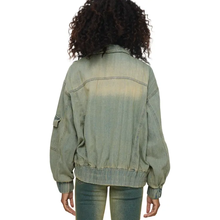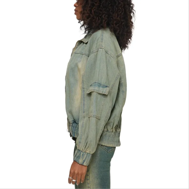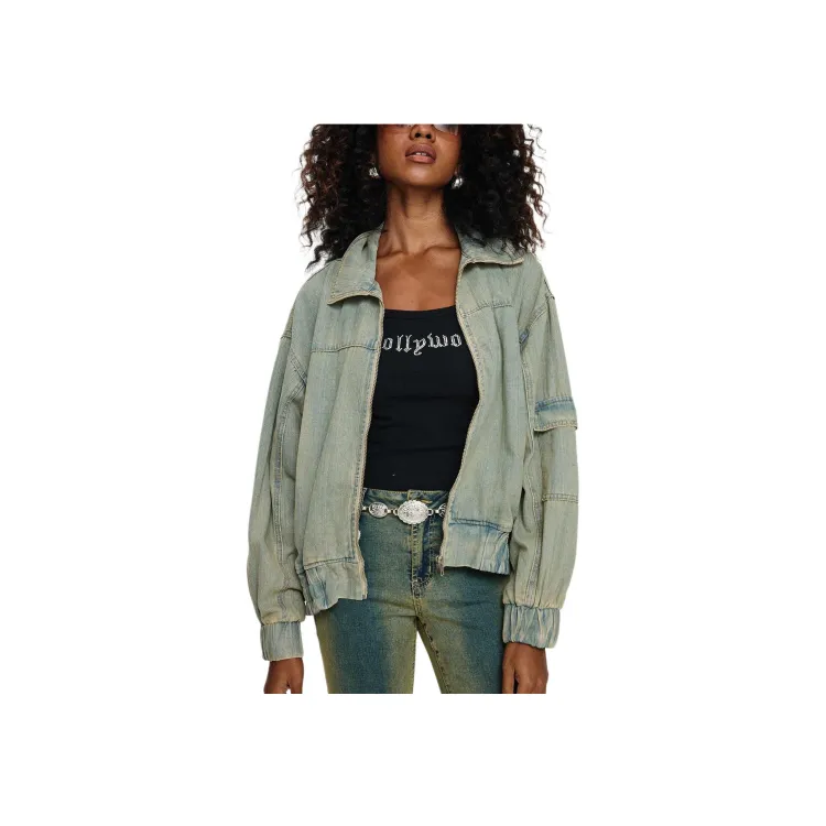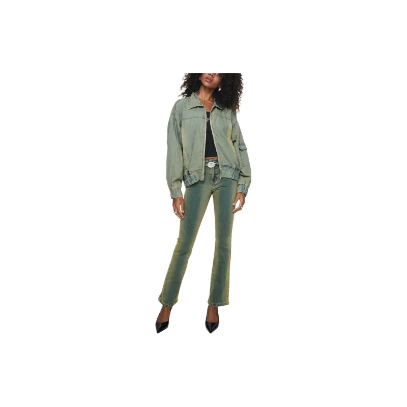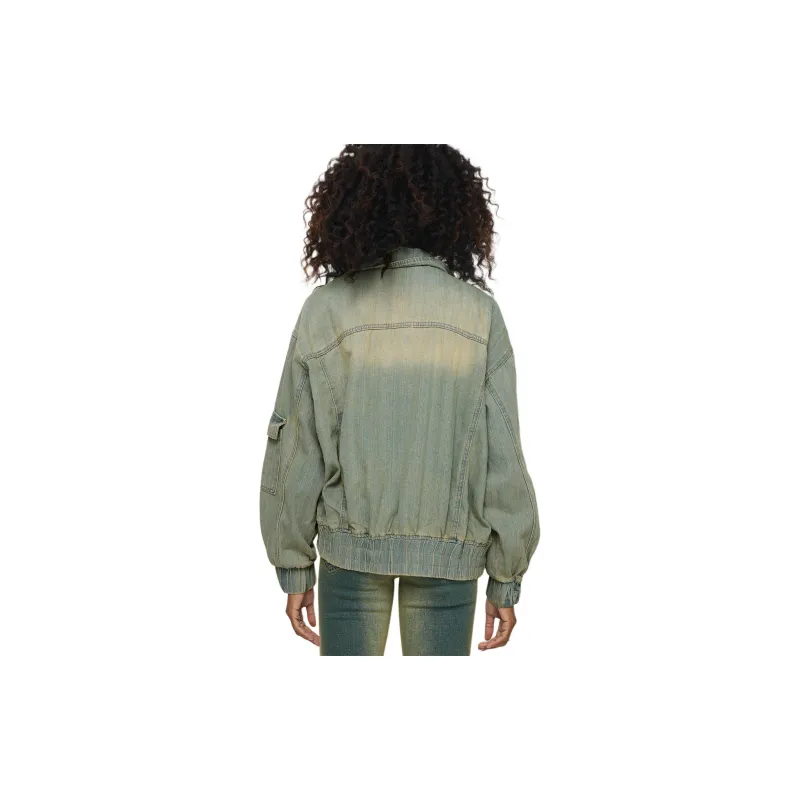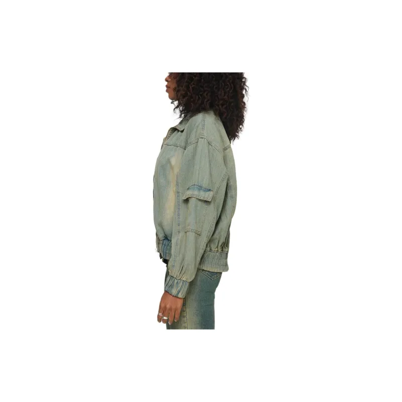PRINCESS POLLY KORBIN Деним Bomber Куртка Деним Куртка Женская Антикварная WASH Искусственный Винтажный Wash