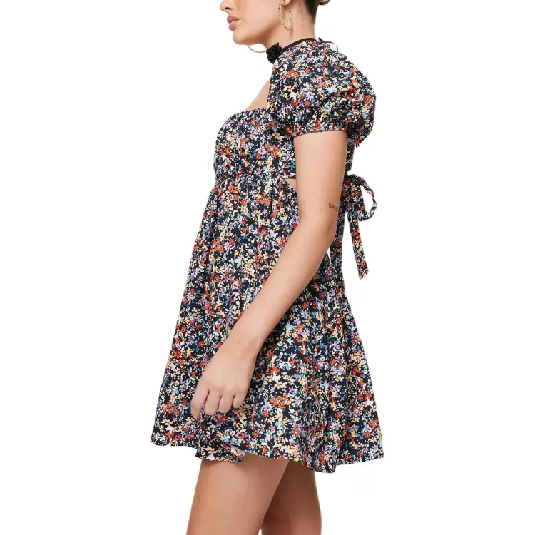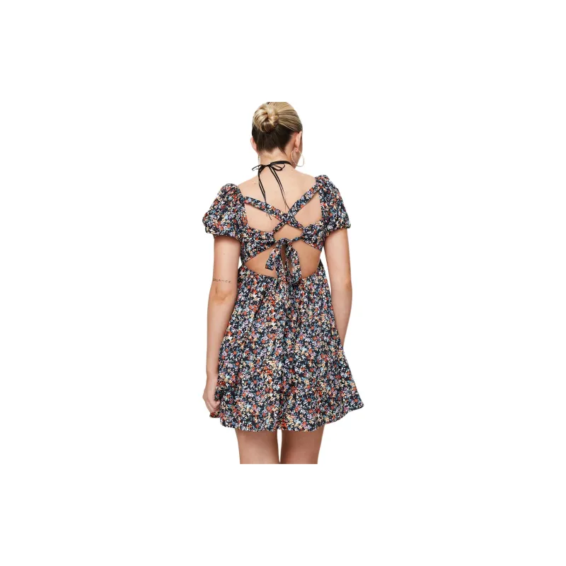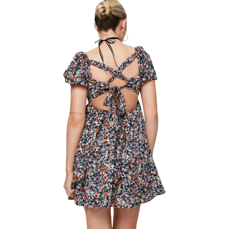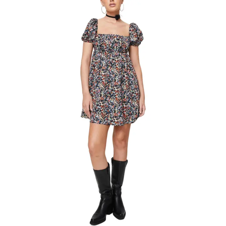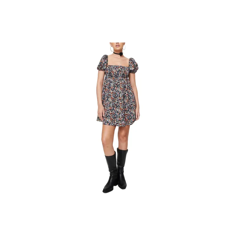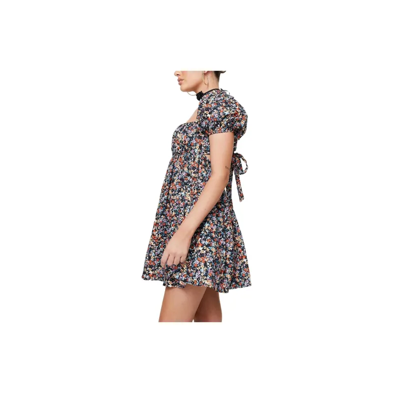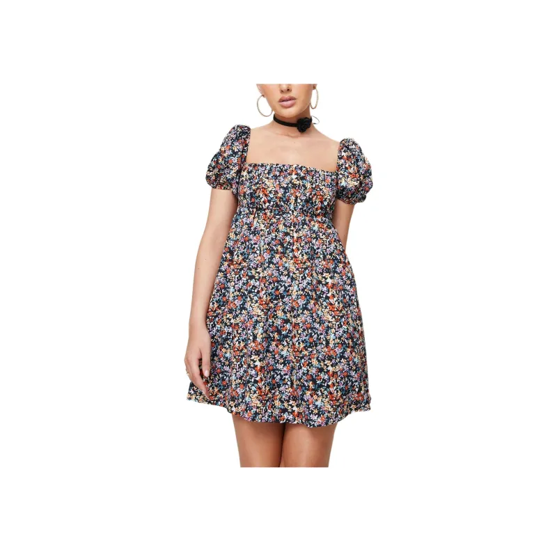 PRINCESS POLLY LET'S DANCE Мини Платье Короткий Рукав Платье Женское Черный Цветочный Черный Цветочный Узор