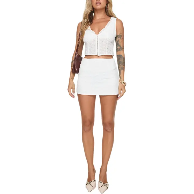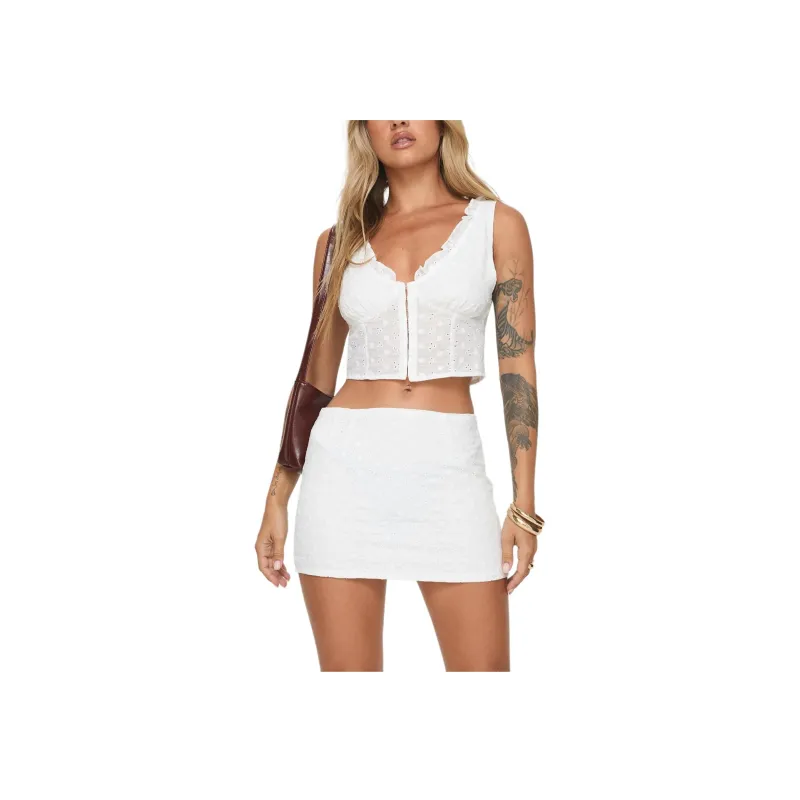 PRINCESS POLLY MARYSE BRODERIE ANGLAISE Мини Набор Комплект с юбкой Женская Белая Белый