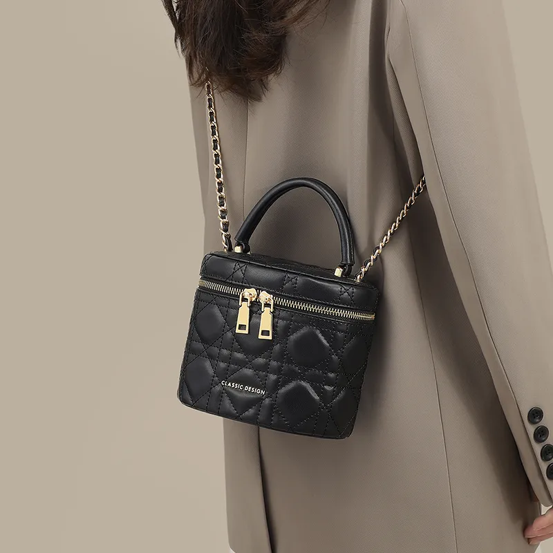 PT'SON Корова Кожа Коробка Сумка Сумка через плечо Сумка Обычная Женская Элегантная Черная