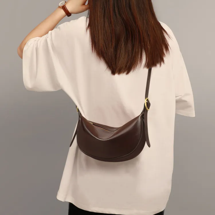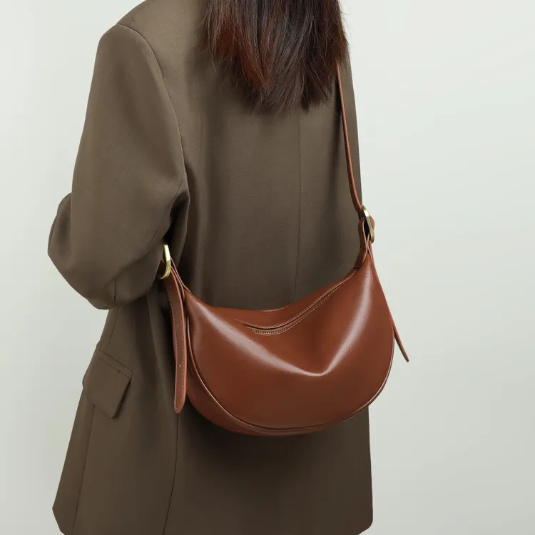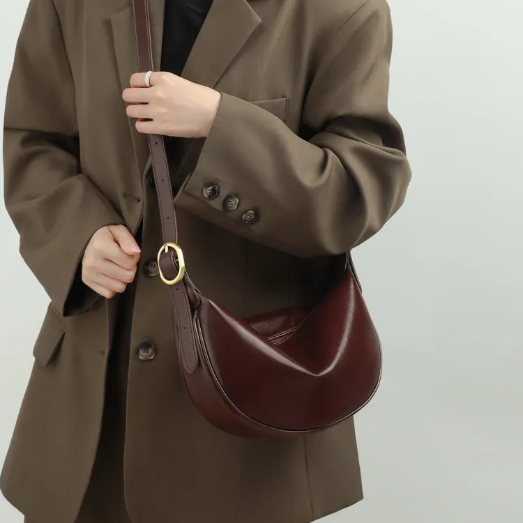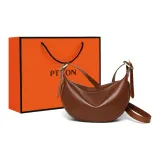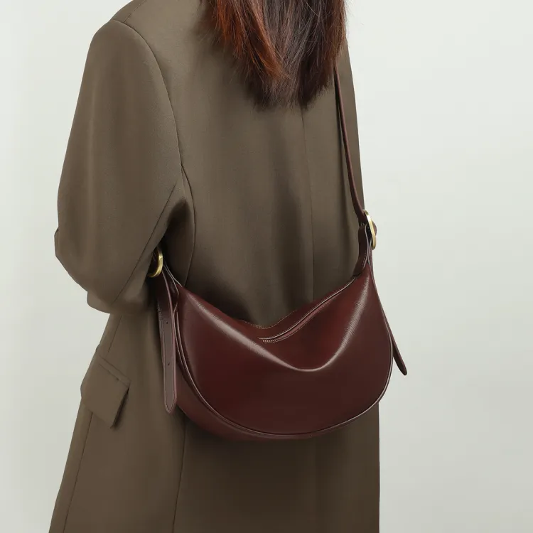 PT'SON Коровья кожа Подмышечный Сумка через плечо Сумка-пельмень Обычный Женские Винно-кофейный Темно-кофейный