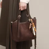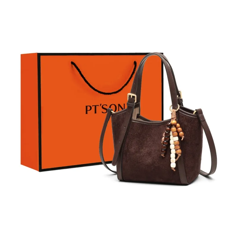 PT'SON Коровья кожа с тканью и синтетической кожей сумка женская кофе