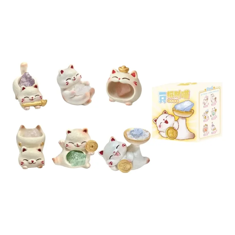 PUDOWRABBIT Мультяшный Креативный Богатство Meow Кристальный Слепые коробки Один Mystery Коробка Целая коробка 6 шт