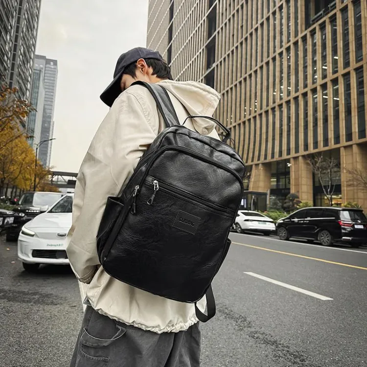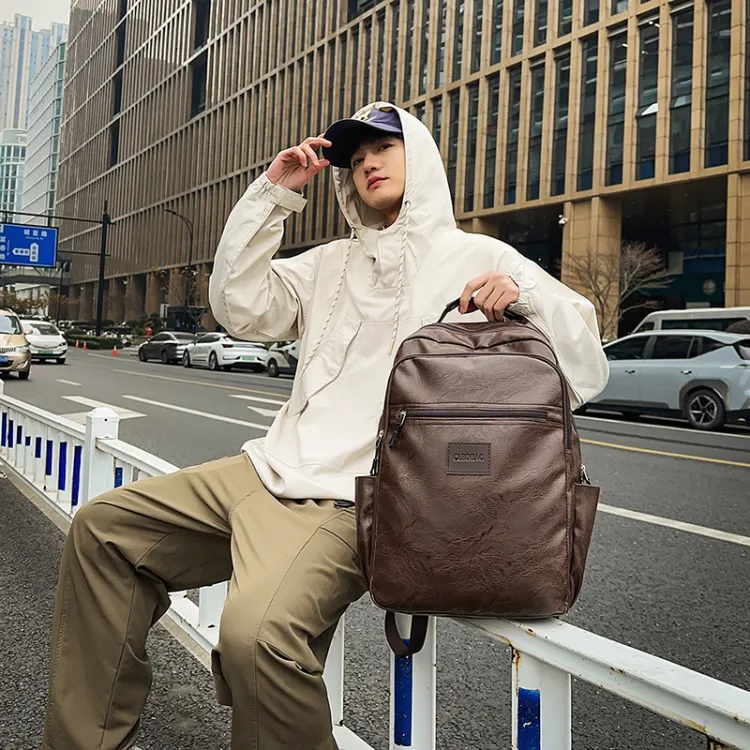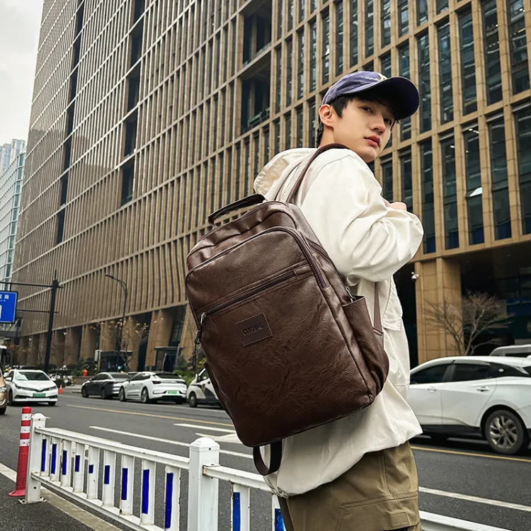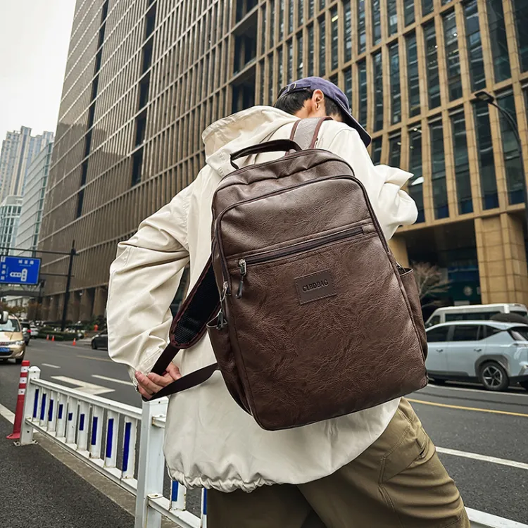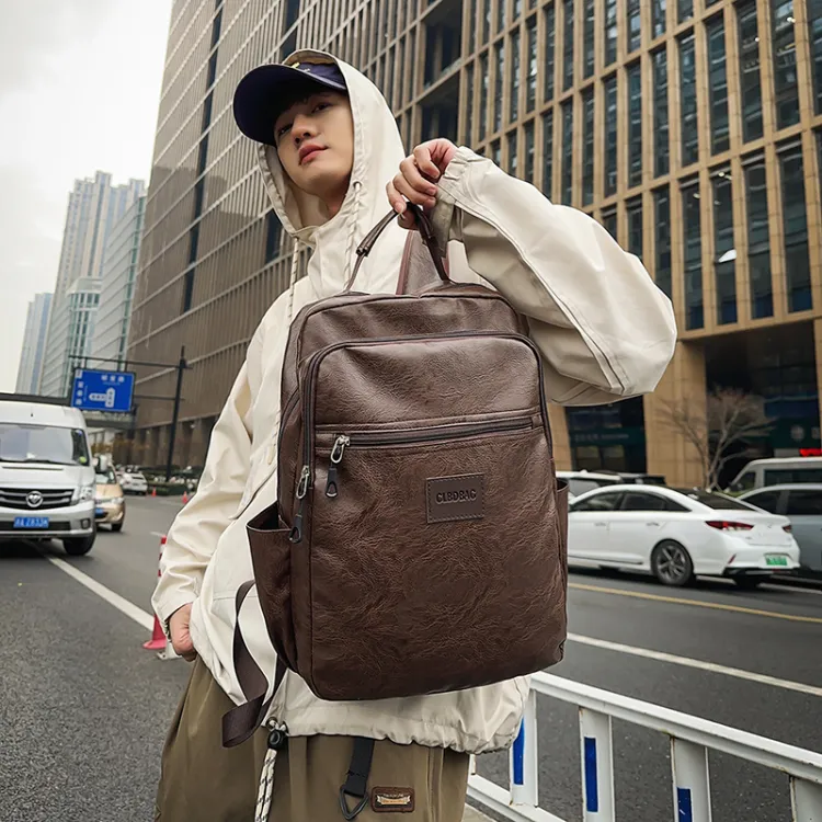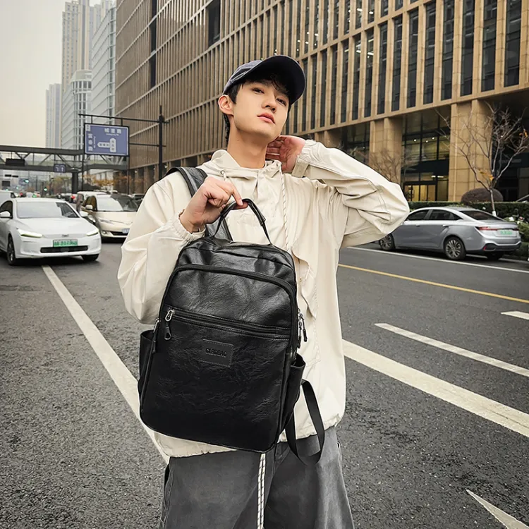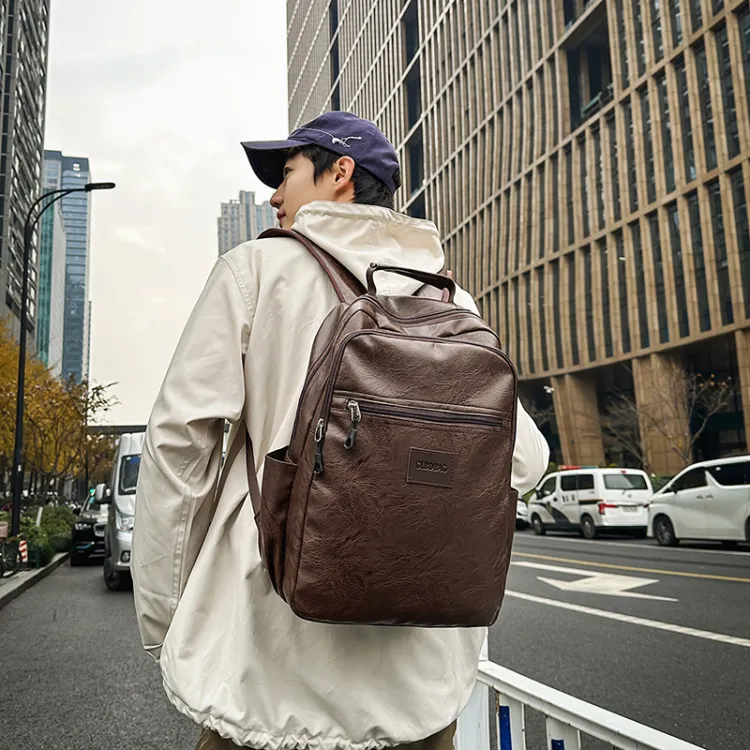 PULEWEI Nylon Backpack Standard Men's Black Brown PULEWEI Нейлоновый рюкзак стандартный мужской черный коричневый