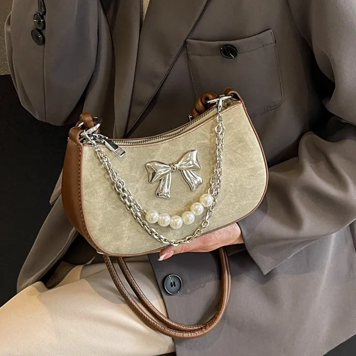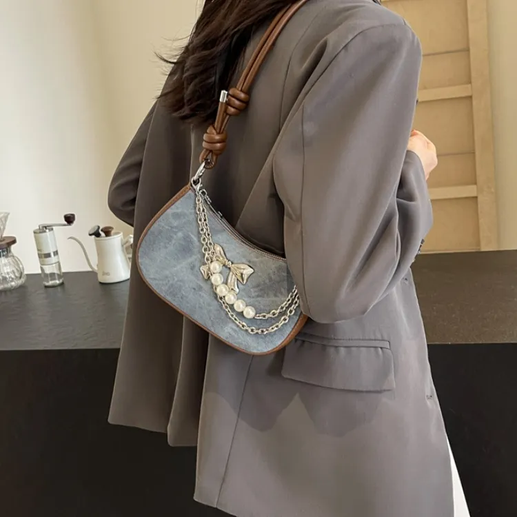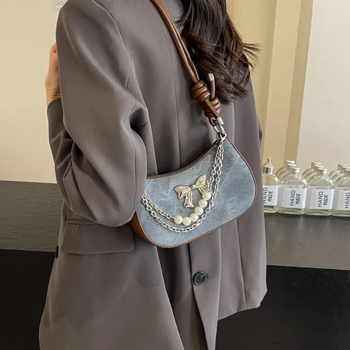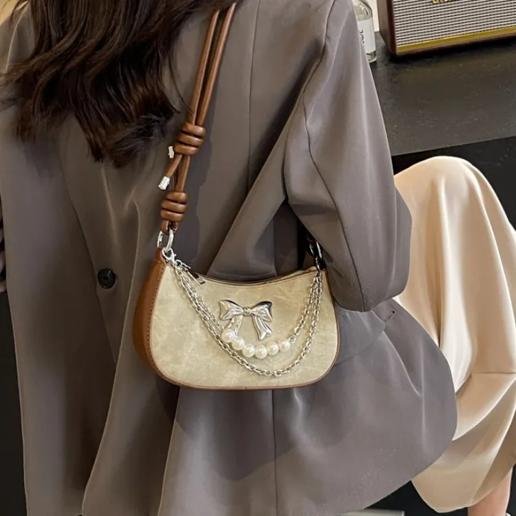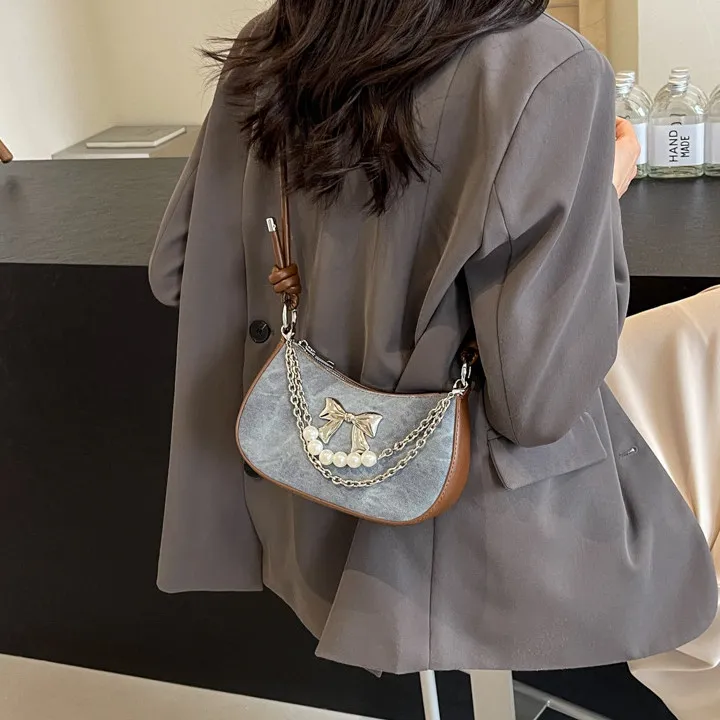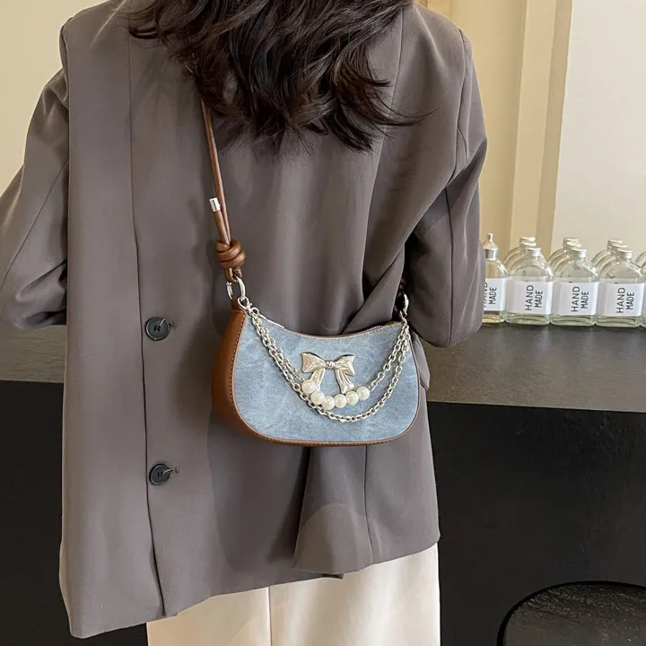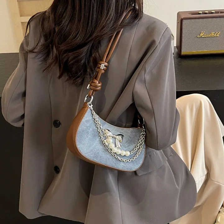 PULUWIRR ПУ (полиуретан) Сумка через плечо Стандартная Женская Джинсовый синий Темный чай Экрю
