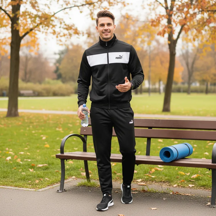 Этот мужской осенний спортивный костюм от PUMA выполнен в основном в черном цвете, демонстрируя сдержанный и элегантный стиль. Дизайн с ретро-спортивными принтами придает образу уникальную модную нотку. Комплект обладает хорошими теплоизоляционными свойствами, обеспечивая комфорт и тепло в осенний период. Мягкие материалы гарантируют отличные ощущения при носке. Этот костюм станет отличным выбором как для повседневной носки, так и для занятий спортом, подчеркивая энергию и харизму мужчины.