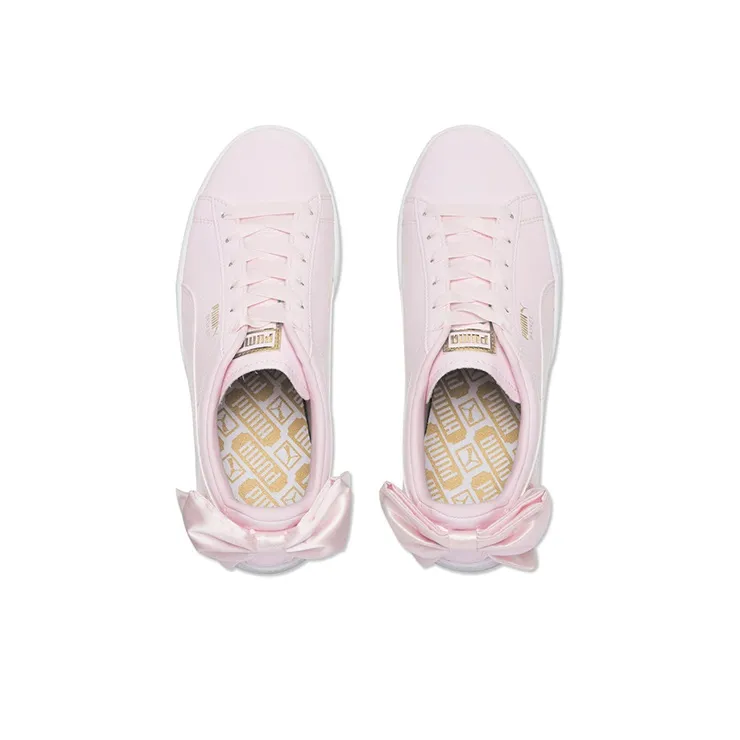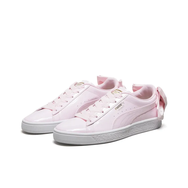 PUMA Basket Bow Patent Low Топ Кроссовки для скейтбординга Женские Розово-белый