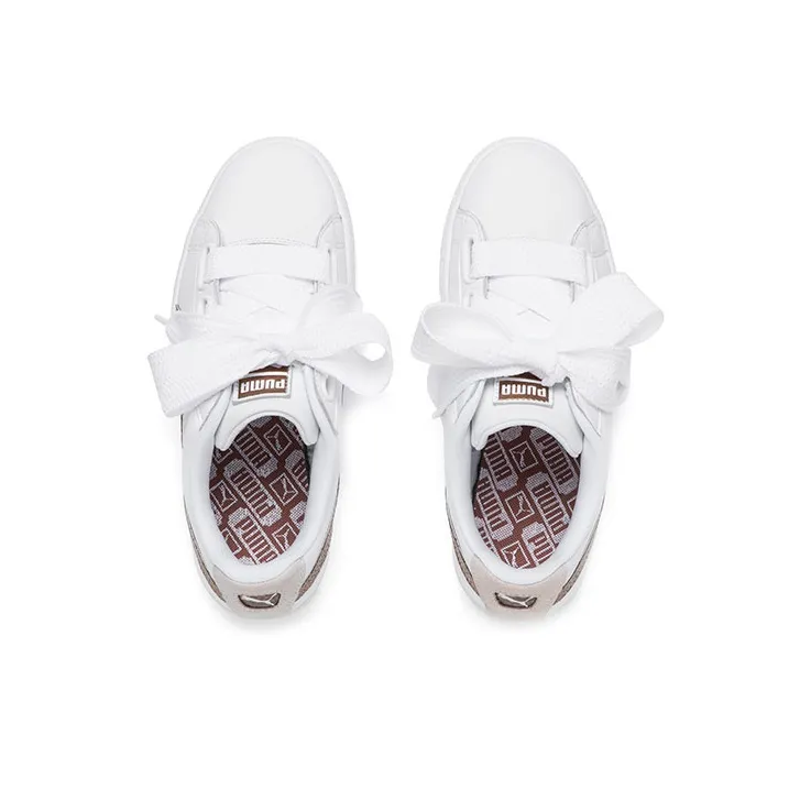 PUMA Basket Heart Блестящий розовый Легкий Баланс Низкие Скейтбординг Кроссовки Женские Белые Розовое золото