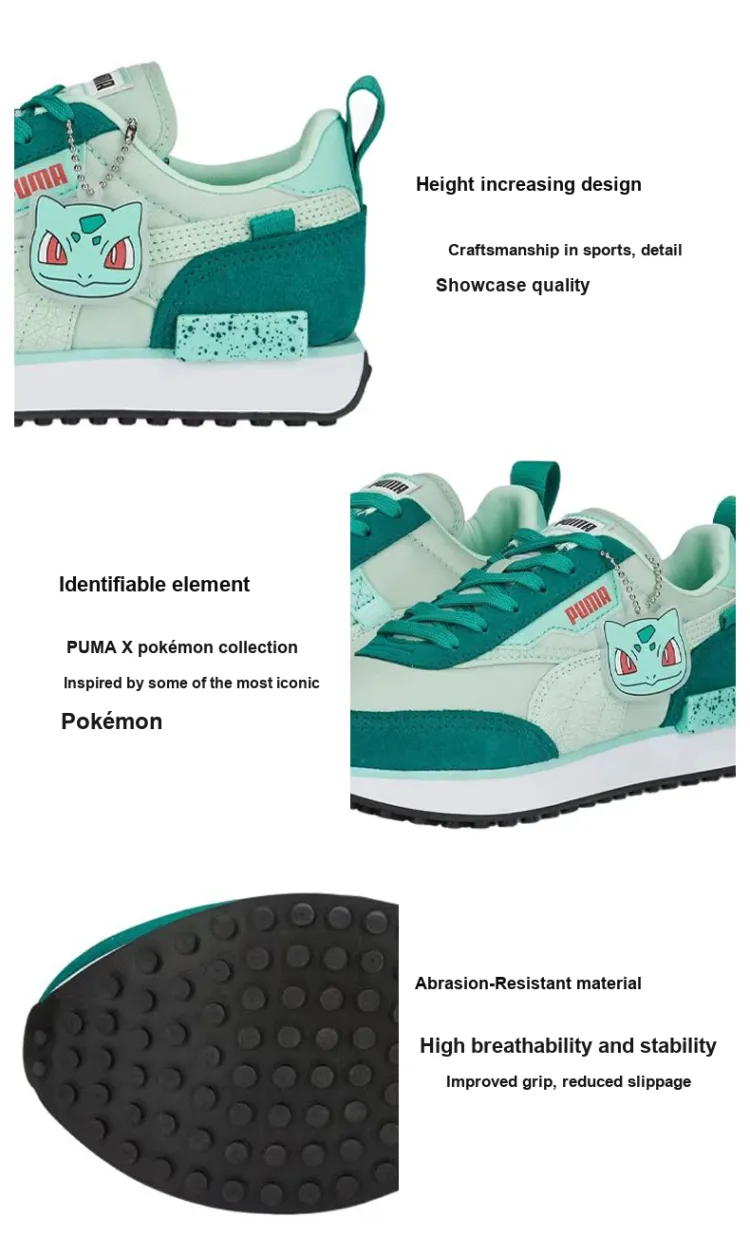 Pokémon X PUMA Future Rider Bulbasaur Kids Lifestyle Shoes Green Teenagers Покемон X PUMA Future Rider Бульбасаур Kids Lifestyle Shoes Зеленый Подростки