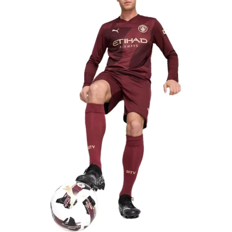 PUMA Manchester City 24 25 Третье Длинное Рукавное Джерси Футбол Джерси Мужское Темно-Красный