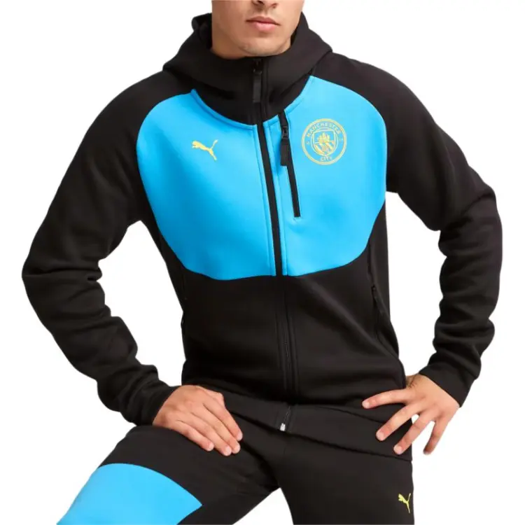 PUMA Manchester City Full Zip Hoodie Мужская Футболка Джерси Черно-Синяя