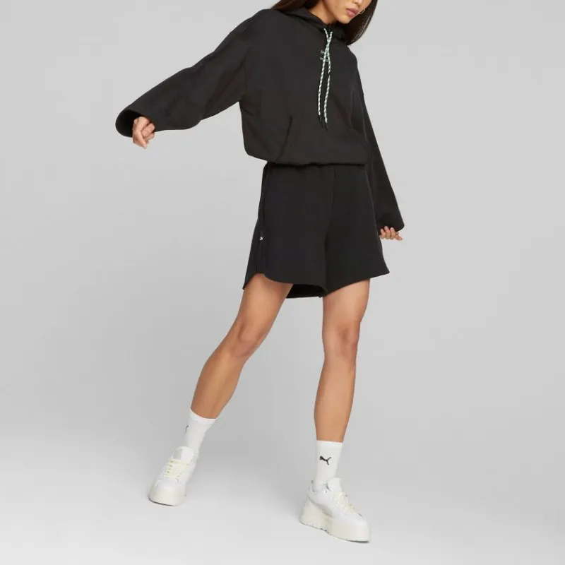 PUMA MMQ Ткани вязаные Downtown High Обхват талии Шорты TR Спортивные шорты Женские Черный