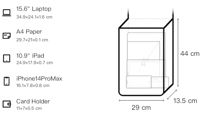 Д29*Ш13,5*В44см