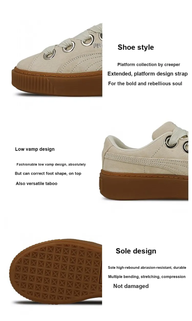 PUMA Suede Series Платформа kiss Low Топ Кроссовки для скейтбординга Женские Белые