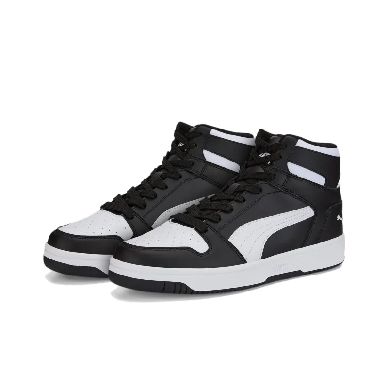 PUMA Rebound Layup Водонепроницаемый Амортизация MID Топ Скейтборд Кроссовки Мужской Черный Белый