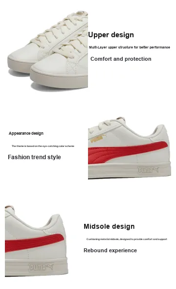 PUMA Smash Vulc V3 Vulc V3 LO Low Топ Скейтборд Кроссовки Унисекс Белый Красный