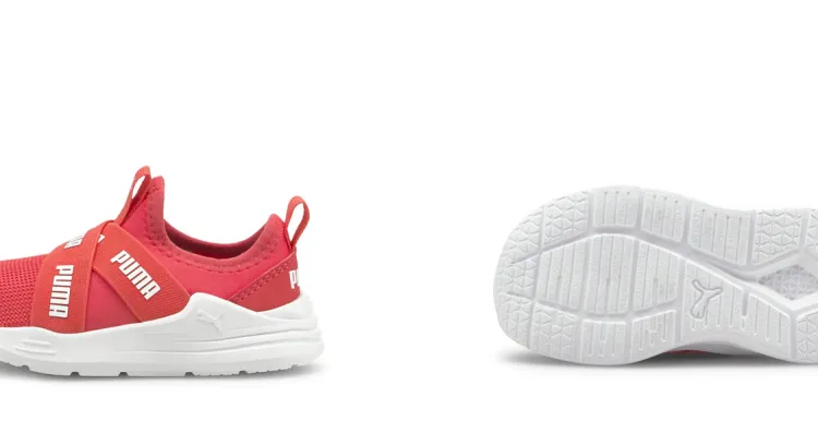 PUMA Wired Run Slip-On Амортизация Износостойкий Низкий Топ Обувь для малышей Красный Белый Infant и Toddler