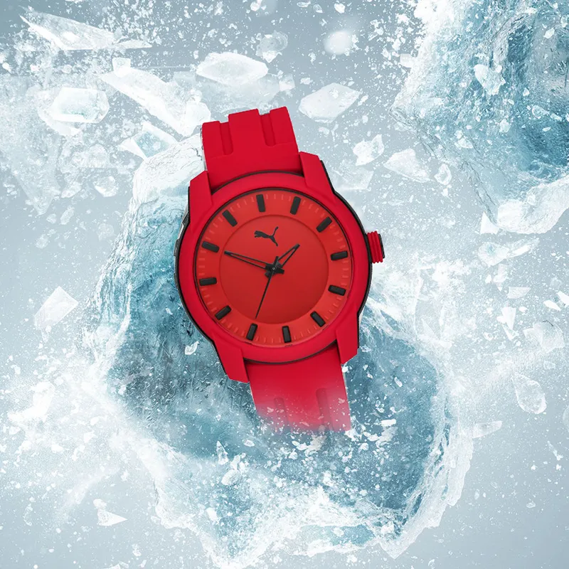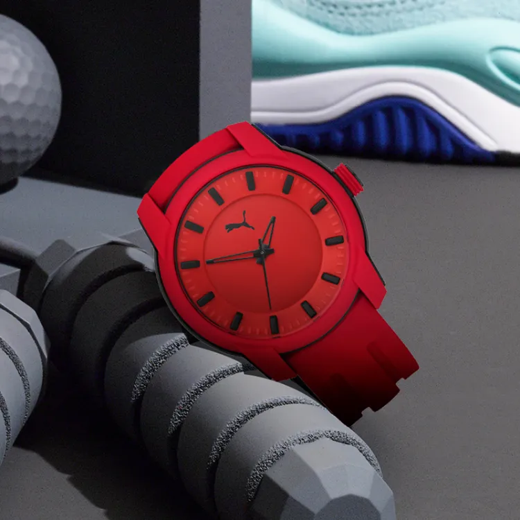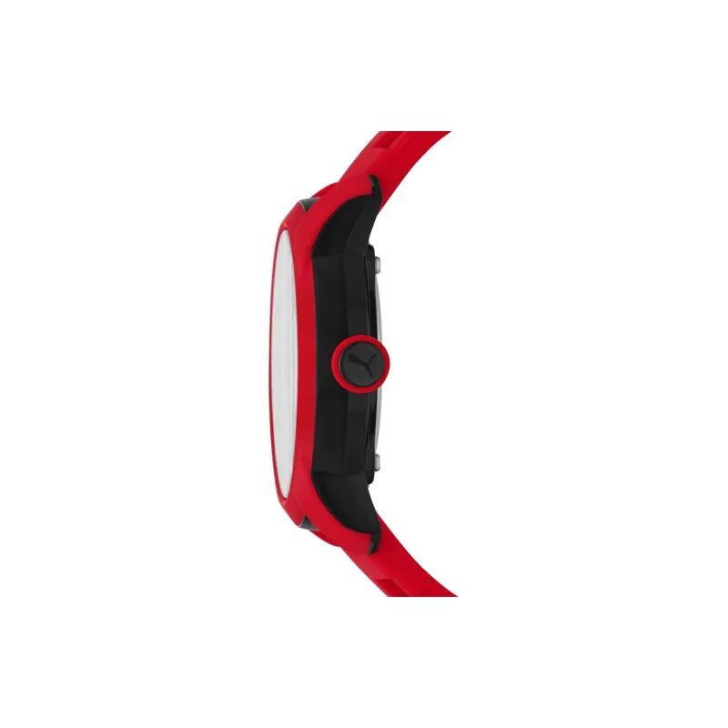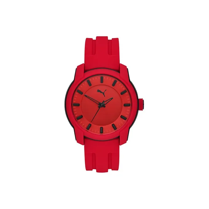 PUMA Мужские часы Кварцевый механизм Резиновый ремешок 45 мм Красный циферблат Часы P6019
